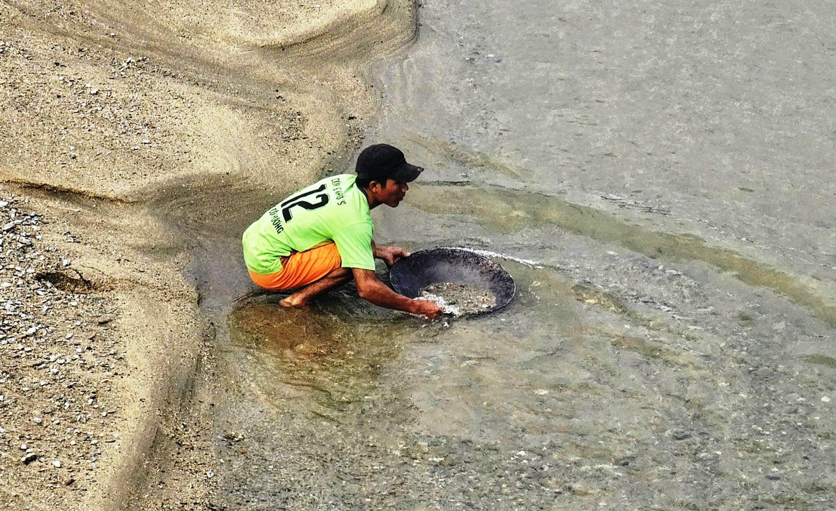 Lúc chúng tôi có mặt ở đây, vợ chồng anh Hồ Văn Đào (ở xã Phước Chánh) đang dùng những thanh gỗ dài gần 1m, rộng 0,5m đóng cọc trên bãi cát làm máng để đãi vàng. Trên đầu máng, anh Đào để một rổ nhựa lọc những viên đá, sỏi hay các loại rác như rễ cây khô, mục... dưới rổ nhựa là máng gỗ có trải một lớp nhựa và dưới nữa là lớp vải, máng có nhiều nấc để khi lọc các lớp sỏi cát, còn đọng lại là vàng.