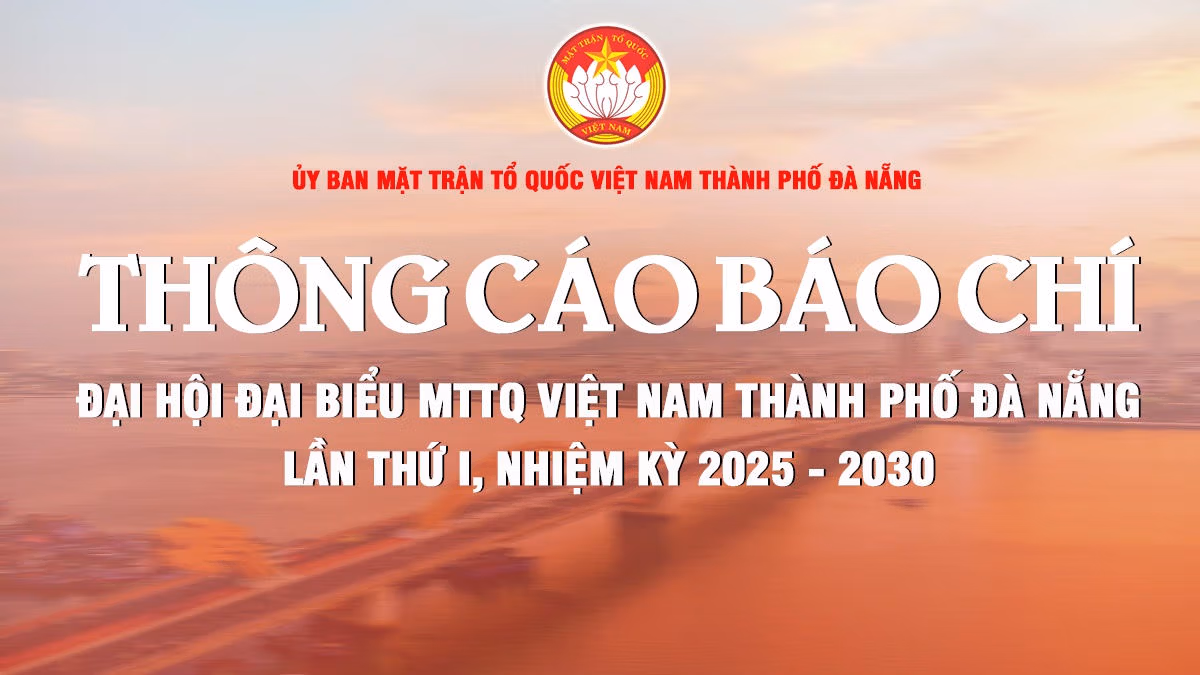 Ngày 27/11, Ủy ban MTTQ Việt Nam TP Đà Nẵng ra Thông cáo báo chí về tổ chức Đại hội đại biểu MTTQ Việt Nam thành phố lần thứ I, nhiệm kỳ 2025-2030.