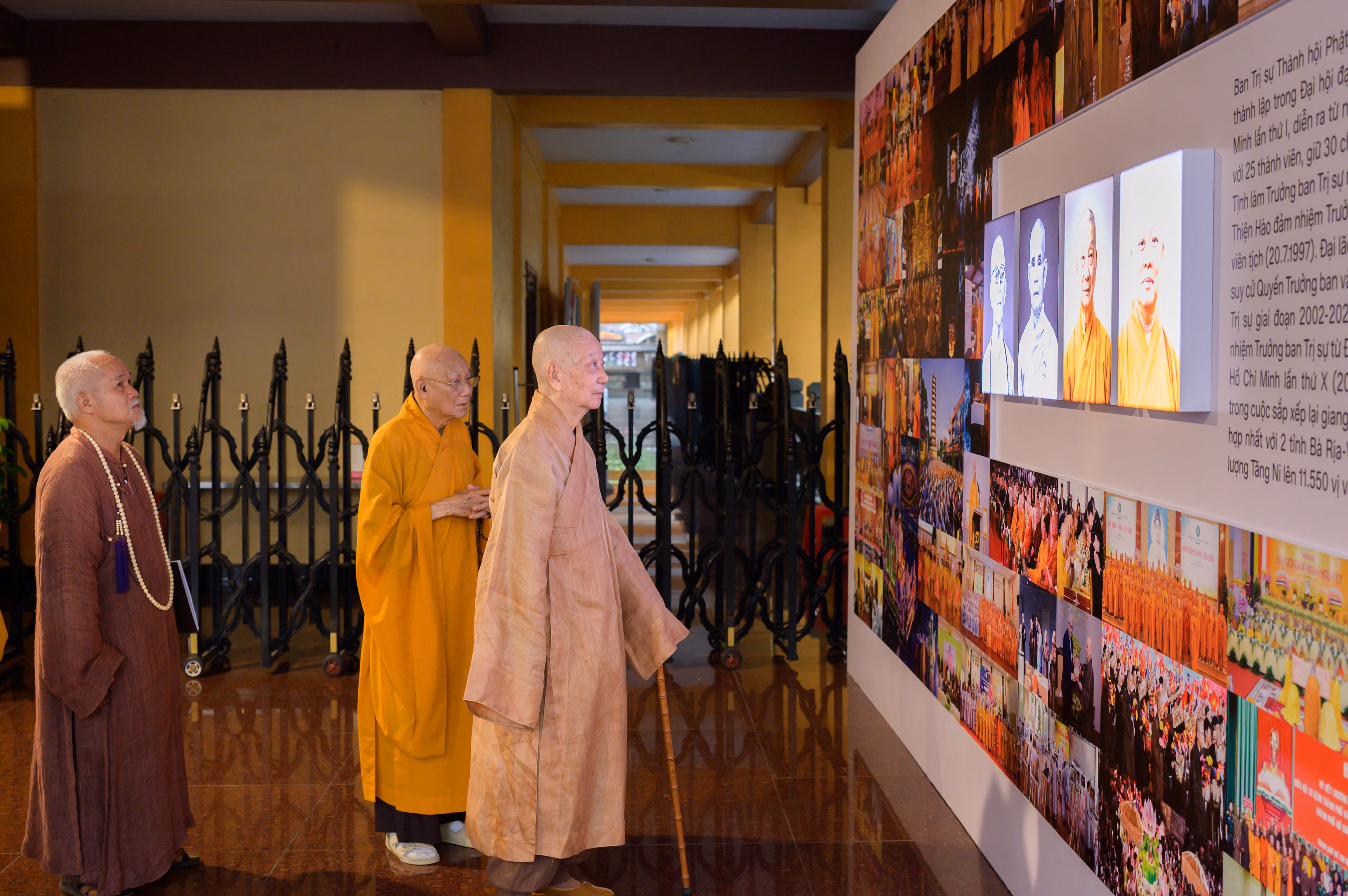 Theo Thượng tọa Thích Tâm Hải, Ủy viên Hội đồng Trị sự GHPGVN, Trưởng ban Thông tin - Truyền thông GHPGVN TP Hồ Chí Minh, triển lãm gồm nhiều mảng đề tài, từ chân dung các chư vị lãnh đạo tối cao của GHPGVN đến hình ảnh, tư liệu tại Hội nghị thống nhất thành lập Giáo hội; các cuộc gặp gỡ lịch sử giữa chư tôn đức với lãnh đạo Đảng, Nhà nước; dấu ấn 9 kỳ đại hội đến thành tựu ở các lĩnh vực như tăng sự, hoằng pháp, văn hóa, hướng dẫn phật tử, nghi lễ, giáo dục, từ thiện xã hội, đại tạng kinh Việt Nam, ni giới,…