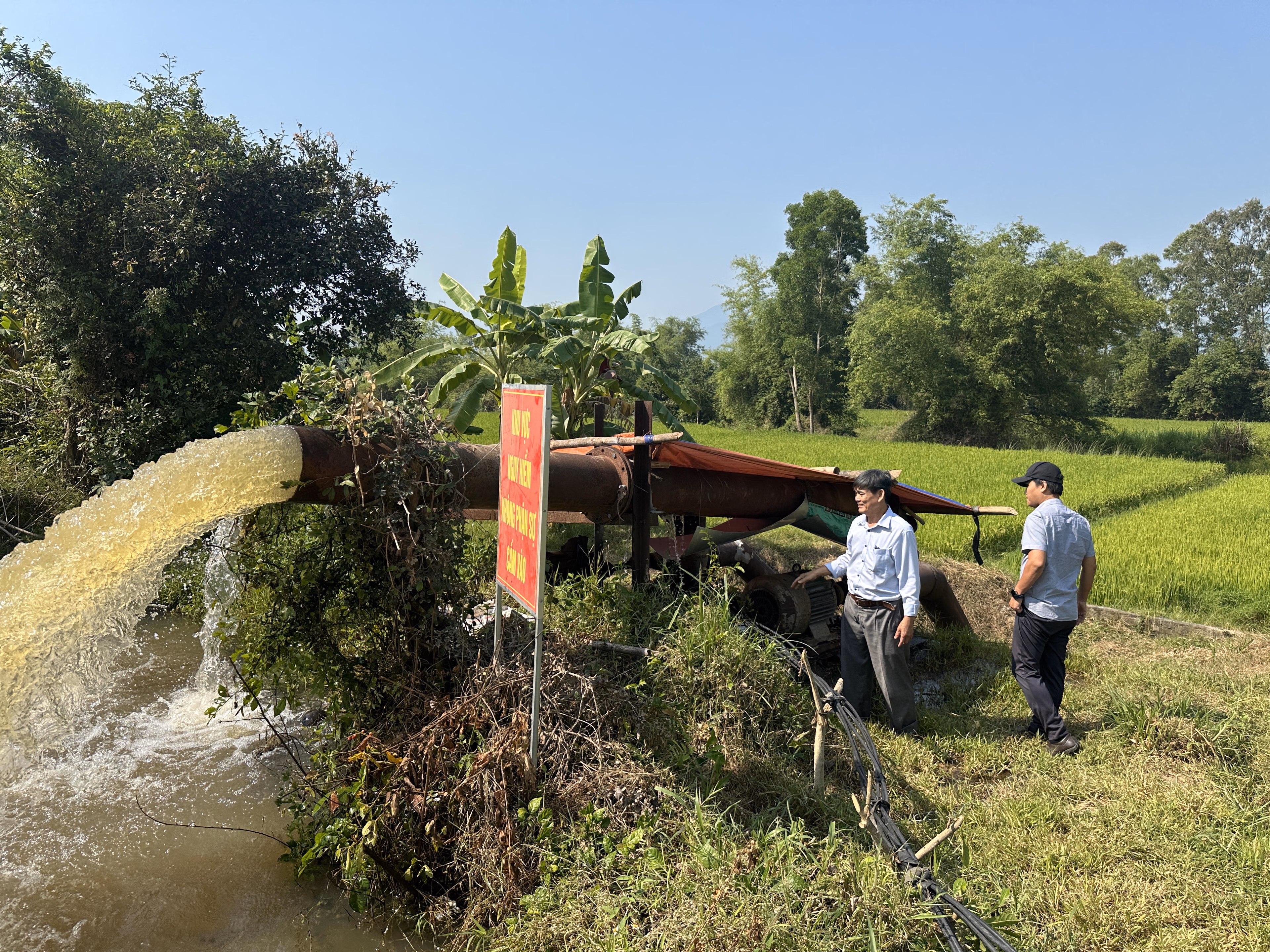 Trước tình thế cấp bách, Công ty TNHH MTV Thủy nông Đồng Cam đã đồng loạt vận hành 7 trạm bơm trong suốt hơn 10 ngày qua. Ngoài các trạm cố định, nhiều điểm bơm dã chiến cũng được thiết lập, tận dụng tối đa nguồn nước từ sông, bàu để tiếp nước cho các kênh nhánh, đưa nước về những khu đồng cao, xa.