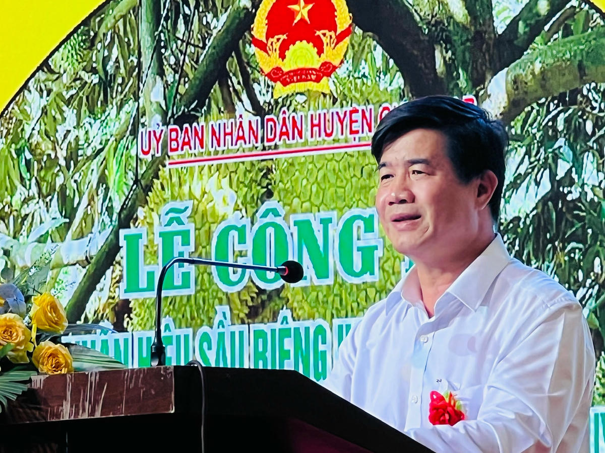 Tại buổi lễ, ông Vũ Hồng Nhật đã biểu dương những người lao động sản xuất giỏi, tạo ra những giá trị mới trong lĩnh vực nông nghiệp của huyện nhà và ghi nhận sự đóng góp của các doanh nghiệp luôn đồng hành với huyện trong việc hỗ trợ người dân xây dựng mã số vùng trồng và kết nối tiêu thụ sản phẩm sầu riêng.