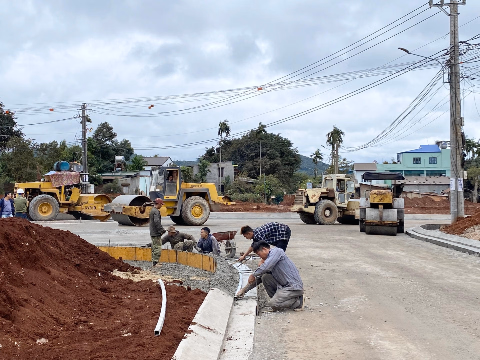 Những ngày đầu năm 2023, trên công trường Dự án đường Đông Tây thành phố Buôn Ma Thuột, hàng chục phương tiện xe chuyên dụng và nhiều tốp công nhân tích cực thi công.