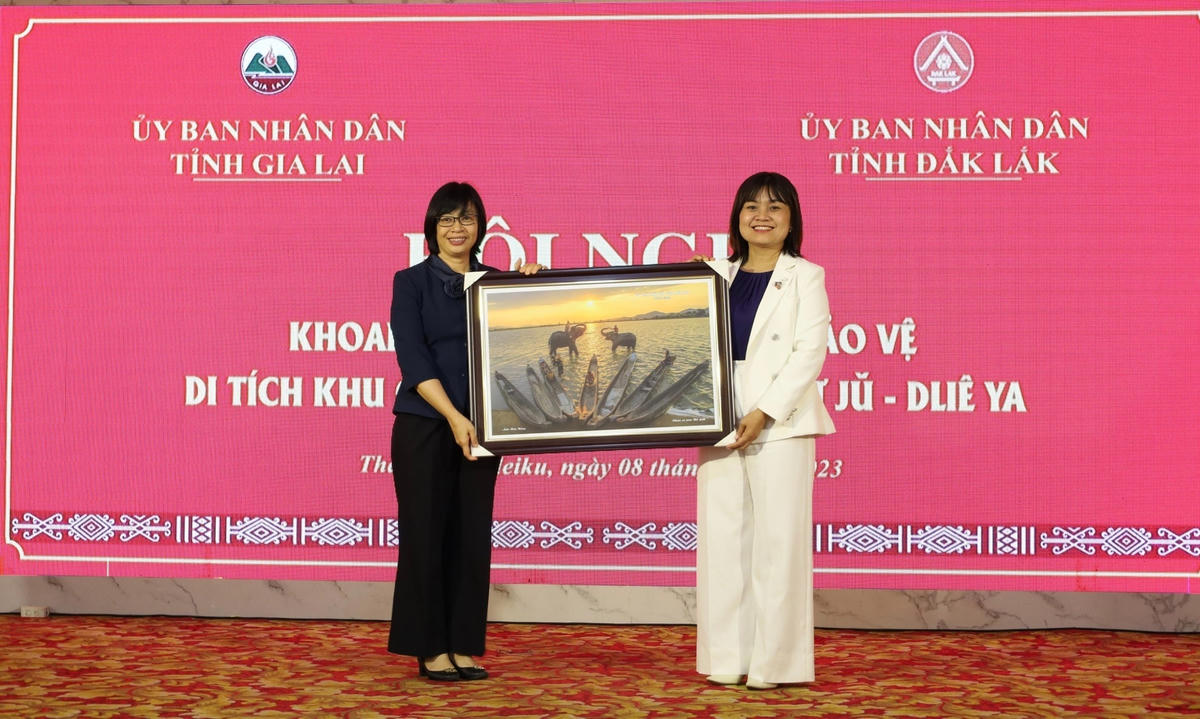 Phó Chủ tịch UBND tỉnh H’Yim Kđoh và Phó Chủ tịch UBND tỉnh Gia Lai Nguyễn Thị Thanh Lịch đồng chủ trì. Tham dự Hội nghị còn có lãnh đạo Sở Văn hóa, Thể thao và Du lịch, UBND các huyện thuộc hai tỉnh cùng các nhân chứng lịch sử.