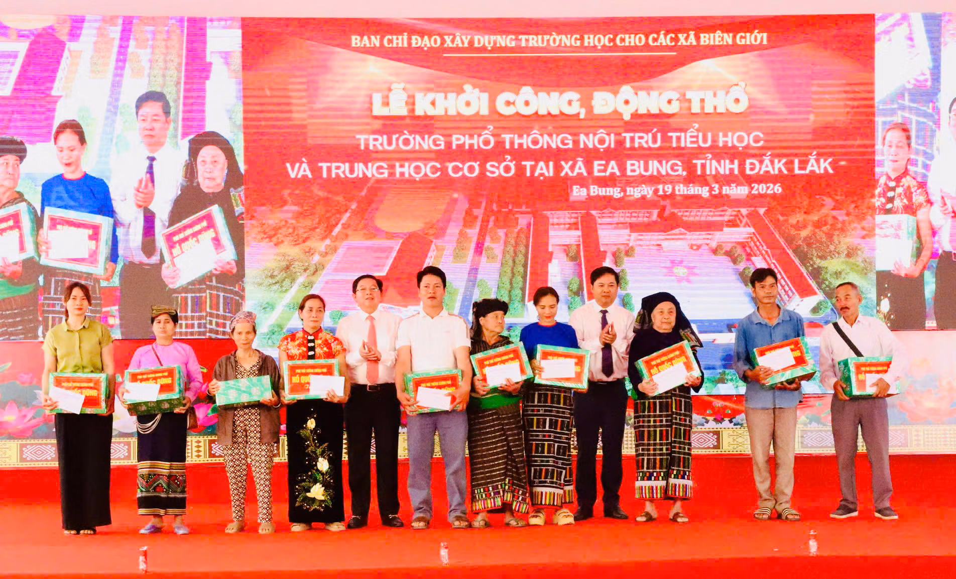Sáng 19/3, Ủy ban nhân dân tỉnh Đắk Lắk tổ chức Lễ động thổ xây dựng Trường phổ thông dân tộc nội trú liên cấp tiểu học và trung học cơ sở tại xã biên giới Ea Bung.