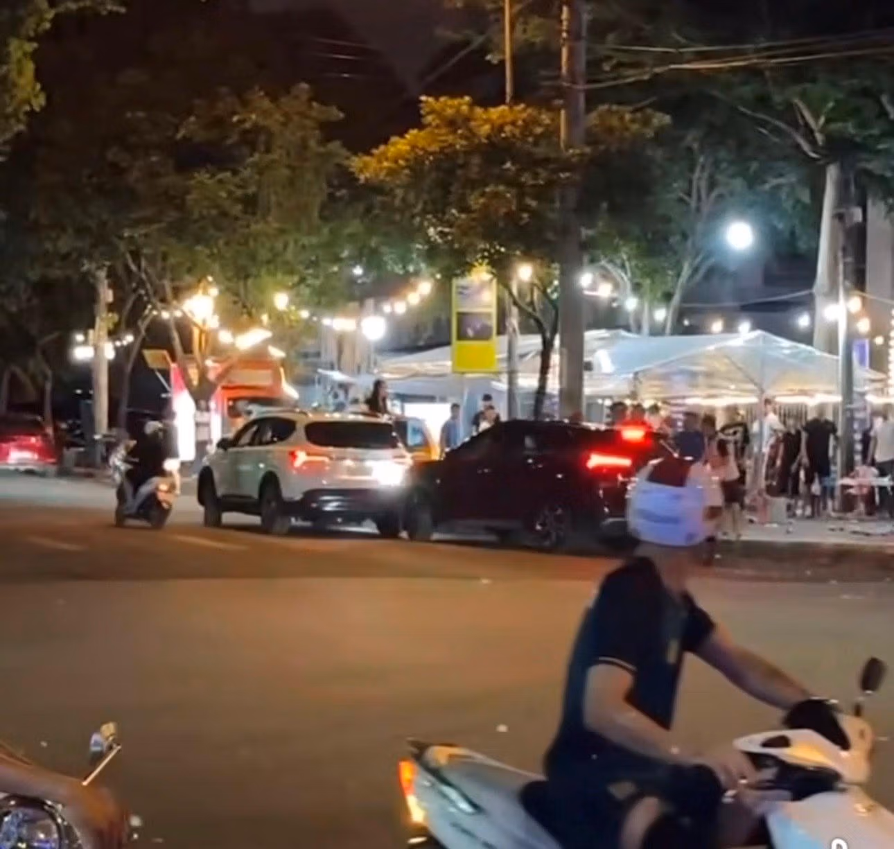 Theo clip của người dân ghi lại, nhiều phụ nữ xông vào đánh nhau hỗn loạn. Sau đó, một cô gái lái ô tô 5 chỗ màu nâu đâm mạnh vào xe ô tô màu trắng đậu ở gần đó. Chưa dừng lại, cô gái xe 5 chỗ tiếp tục lùi xe và đâm thêm một lần vào đuôi chiếc xe trắng làm náo loạn đường phố.