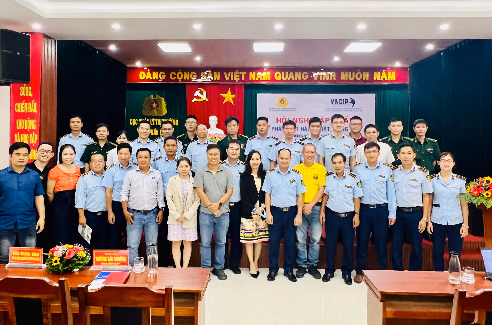 Dự Hội nghị có các thành viên trong Hiệp hội Chống hàng giả và bảo vệ quyền sở hữu trí tuệ của các doanh nghiệp (VACIP); đại diện cán bộ, chiến sĩ thuộc Bộ Chỉ huy Bộ đội Biên phòng tỉnh Đắk Lắk; Các thành viên Đoàn kiểm tra liên ngành 389 của tỉnh Đắk Lắk.