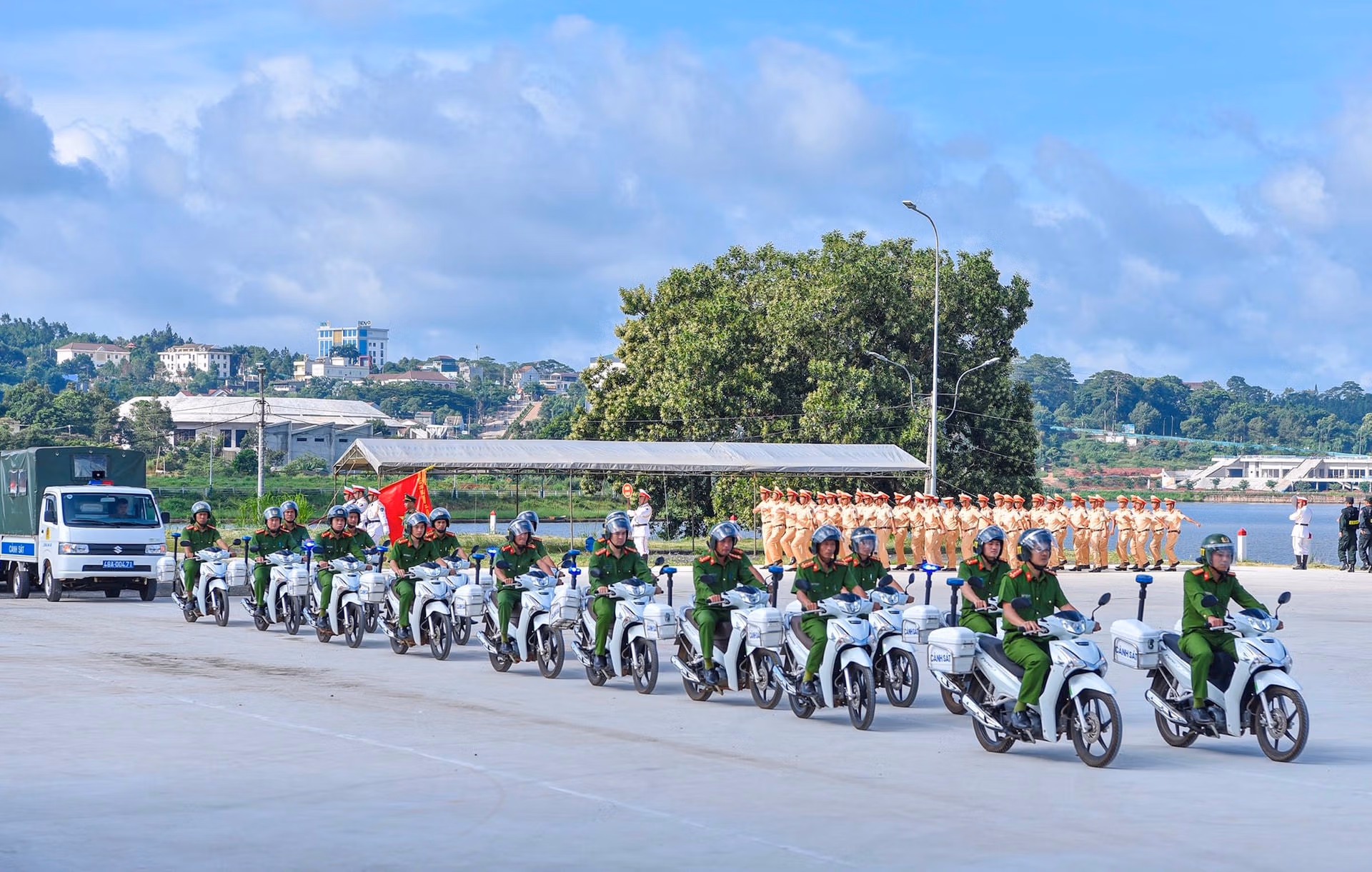 Tại buổi lễ, để biểu dương lực lượng, gần 500 cán bộ, chiến sĩ Công an, lực lượng tham gia bảo vệ ANTT cơ sở và người dân trên địa bàn đã tham gia diễu hành biểu dương lực lượng và diễn tập các tình huống bảo đảm ANTT ở cơ sở.