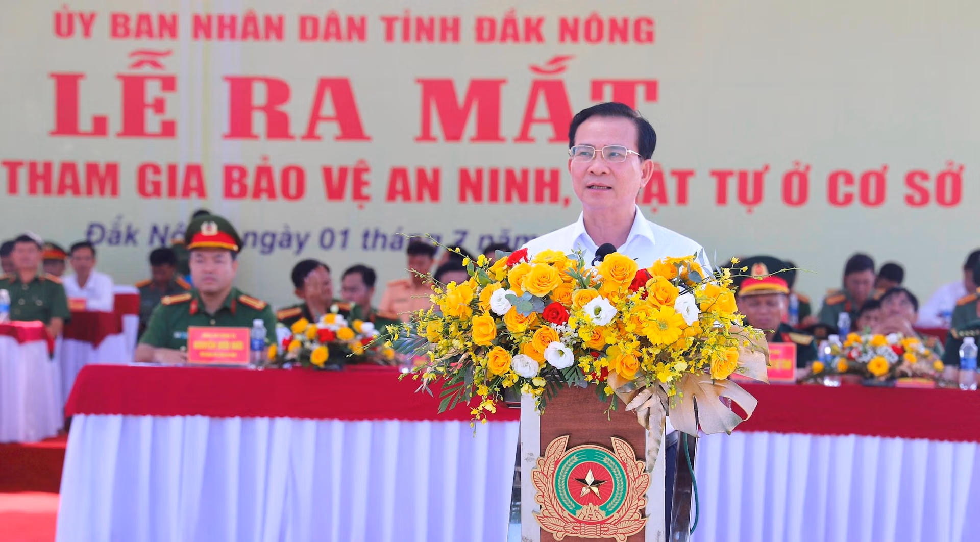 Phát biểu chỉ đạo tại lễ ra mắt, Phó Bí thư Tỉnh ủy, Chủ tịch UBND tỉnh Đắk Nông Hồ Văn Mười nhấn mạnh, lực lượng tham gia bảo vệ ANTT ở cơ sở được kiện toàn từ lực lượng Bảo vệ dân phố, Công an xã bán chuyên trách và đội trưởng, đội phó Đội dân phòng được bố trí ở các thôn, bon, buôn, bản, tổ dân phố làm nòng cốt hỗ trợ trong bảo vệ ANTT và xây dựng Phong trào toàn dân bảo vệ an ninh Tổ quốc.