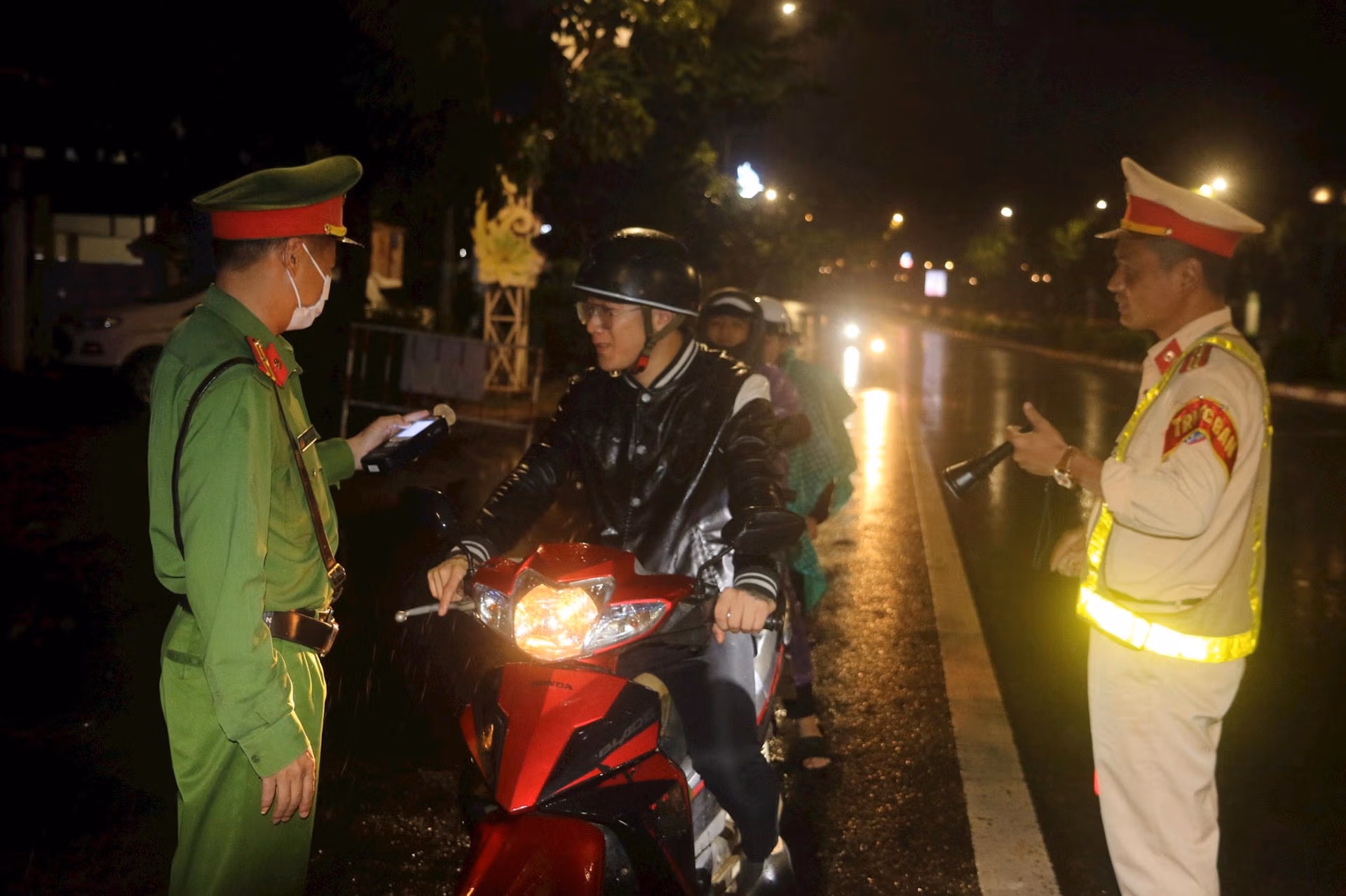 Tuy nhiên, vào thời điểm về khuya, tổ công tác đã phát hiện 16 trường hợp vi phạm, trong đó có 12 trường hợp xe mô tô, 4 trường hợp xe ô tô vi phạm nồng độ cồn. Trong 4 trường hợp ô tô (3 trường hợp ở mức dưới 0,25 miligam/lít khí thở, 1 trường hợp ở mức trên 0,4 miligam/lít khí thở).