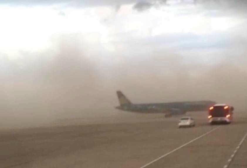 Khi đang có máy bay chở khách dừng đỗ trong sân bay Phú Bài thì bất ngờ những "đám mây bụi" rất lớn kéo đến bao trùm cả sân bay, cảnh tượng như trong một cơn “bão cát sa mạc”...