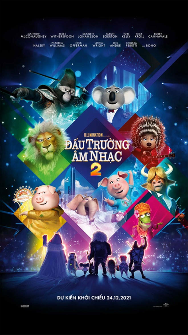 Tiếp nối, là sự trở lại của thương hiệu hoạt hình đình đám “Sing” trong phần phim Đấu trường âm nhạc 2 (tựa gốc Sing 2 - khởi chiếu 24/12) sẽ chiếu đãi khán giả một bữa tiệc âm nhạc thịnh soạn mùa Giáng sinh.