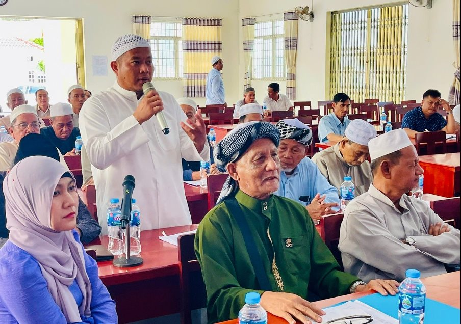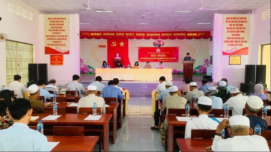 Bên cạnh đó, các đại biểu cũng đã nghe báo cáo tình hình hoạt động của Ban đại diện Cộng đồng Hồi giáo (Islam). Bà con cộng đồng dân tộc Chăm luôn phát huy tinh thần đoàn kết, chấp hành tốt chủ trương, chính sách của Đảng, nhà nước, bản sắc văn hoá truyền thống luôn được phát huy, đời sống bà con tín đồ không ngừng phát triển.