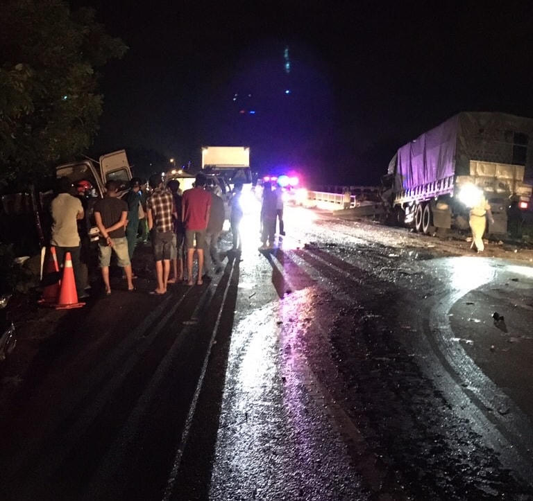 Theo báo cáo của Trạm kiểm sát Giao thông Hàm Tân, tỉnh Bình Thuận, vào lúc hơn 1h sáng nay, 21/7, tại km 1767 QL 1A thuộc thôn 2, xã Tân Đức, huyện Hàm Tân, tỉnh Bình Thuận, chiếc xe tải BKS 79N-0315 do Phan Thanh Tùng (29 tuổi, ngụ tại TP Cam Ranh, Khánh Hòa) điều khiển theo hướng từ TP HCM đi ra bắc, đã va chạm với xe khách 16 chỗ của nhà xe Anh Trinh, BKS 86B-010.87 do tài xế Nguyễn Thanh Tiệp (32 tuổi, ngụ tại Lâm Đồng) cầm lái, lưu thông hướng Phan Thiết đi TP HCM.