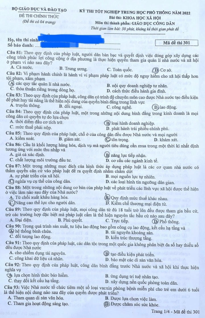 Sáng 8/7, các thí sinh đã hoàn thành môn Giáo dục công dân của bài thi Khoa học xã hội, Kỳ thi tốt nghiệp THPT 2022 dưới hình thức trắc nghiệm. Dưới đây là gợi ý đáp án từ ban chuyên môn Tuyensinh247: