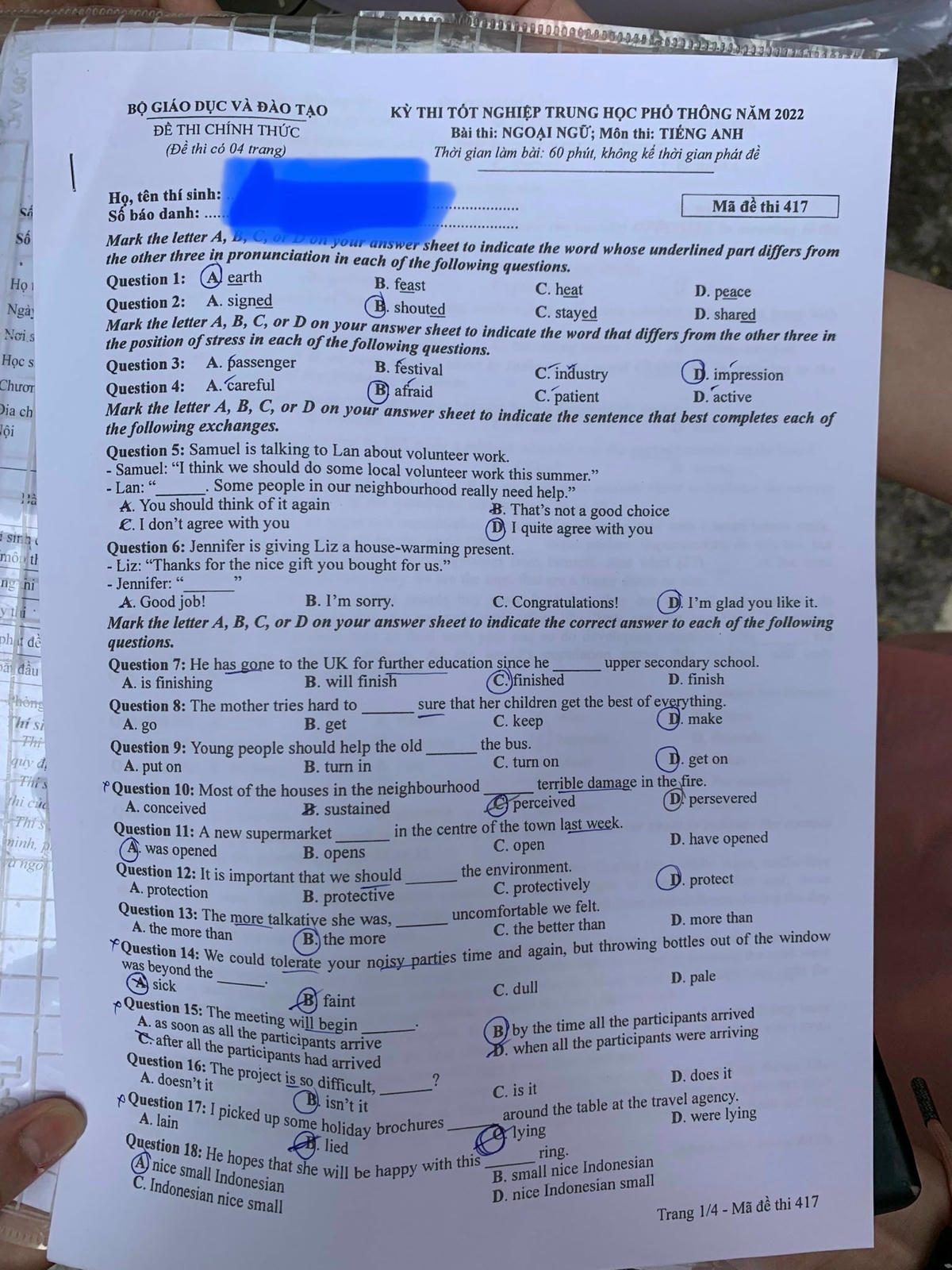 Đáp án gợi ý môn Ngoại ngữ Kỳ thi tốt nghiệp THPT 2022