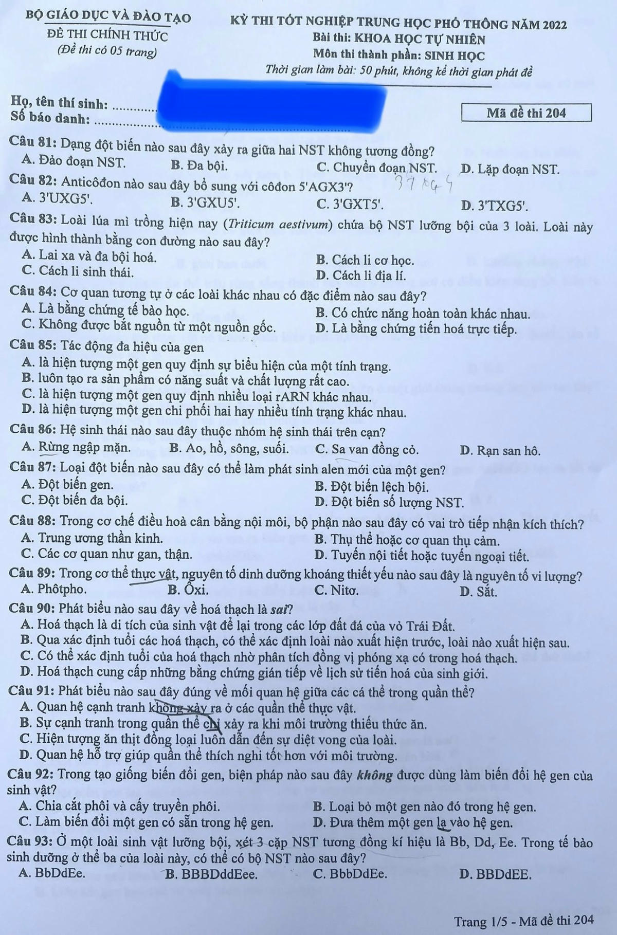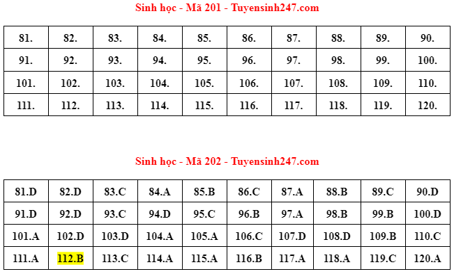Đáp án gợi ý môn Sinh học Kỳ thi tốt nghiệp THPT 2022