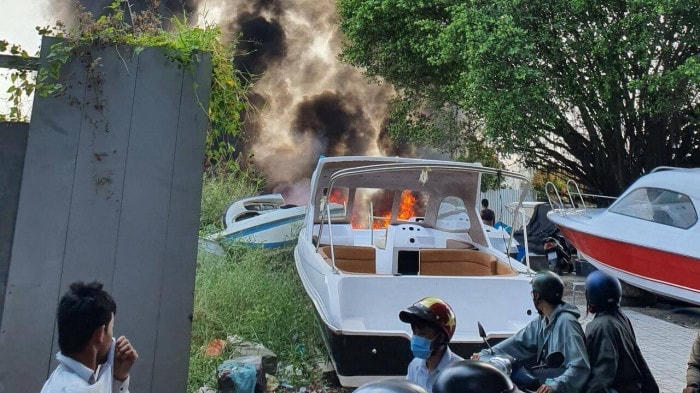 Dù vậy, do bên trong chứa nhiều vật liệu dễ cháy nên ngọn lửa bùng phát mạnh và lan nhanh sang nhiều ca nô khác trong bãi. Thời điểm này, cột khói đen bốc lên cao có thể nhìn thấy từ cách đó hàng km, ngoài ra một vài tiếng nổ lớn đã vang lên.