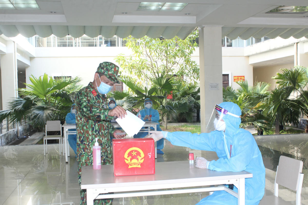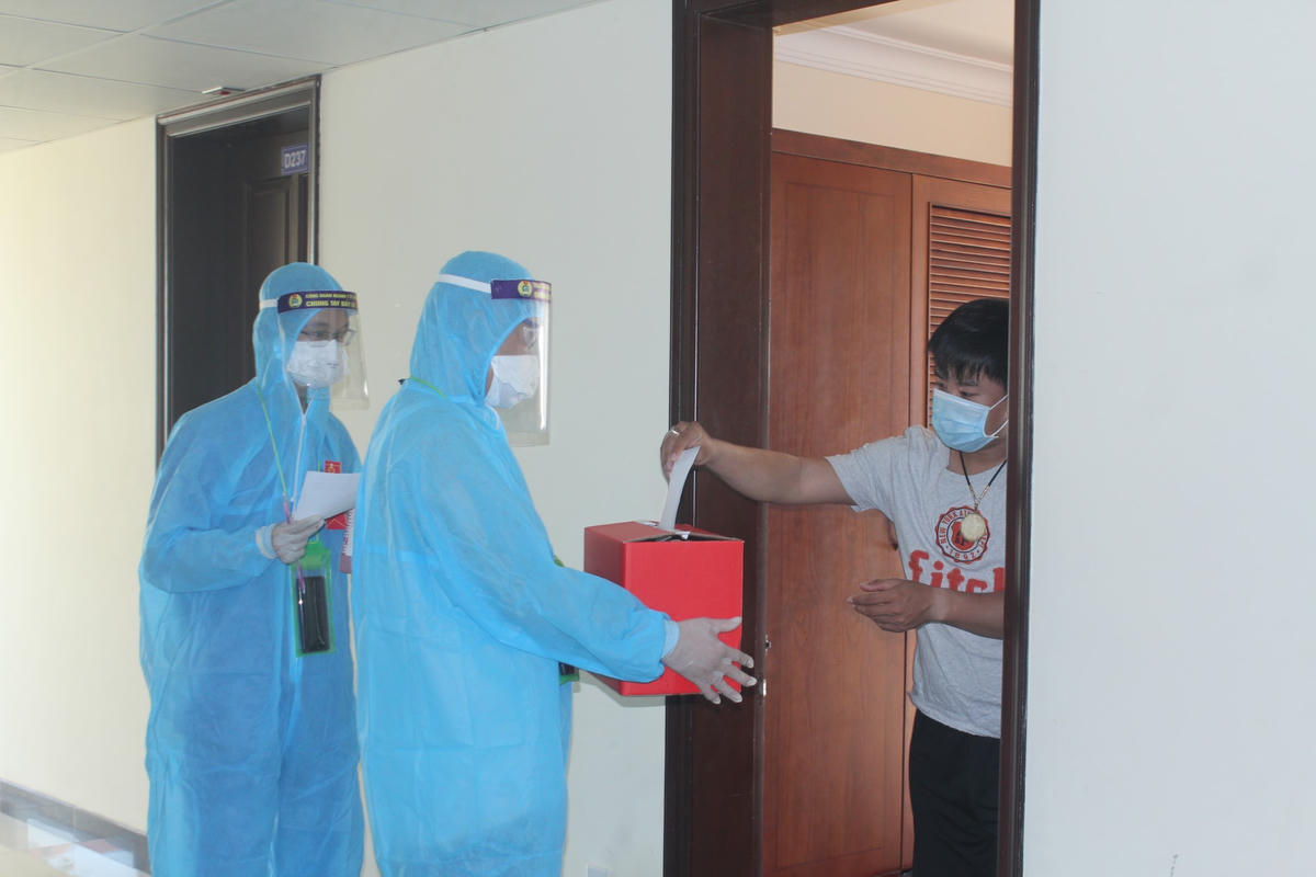 Theo đó, tổ bầu cử trong khu cách ly mang lá phiếu, hòm phiếu đến từng phòng và thực hiện công tác bầu cử ngay tại phòng của các công dân. Mặc dù, bầu cử trong điều kiện phải cách ly tập trung, song các công dân đều vui mừng, phấn khởi và thực hiện nghĩa vụ của người công dân một cách nghiêm túc, vui vẻ.
