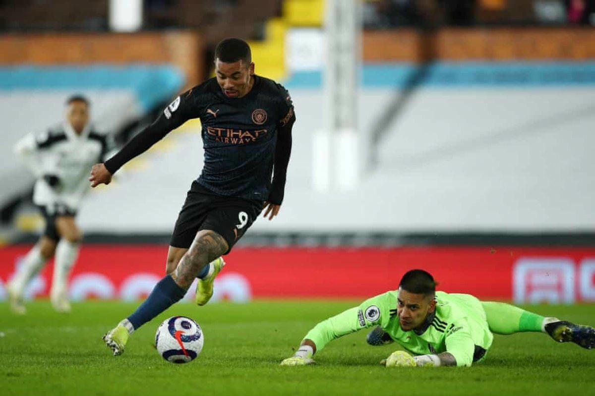 Bất ngờ nhận món quà từ trên trời rơi xuống, Gabriel Jesus bình tĩnh đi bóng vượt qua thủ môn Alphonse Areola rồi dễ dàng dứt điểm vào lưới trống, nhân đôi cách biệt cho Man City.
