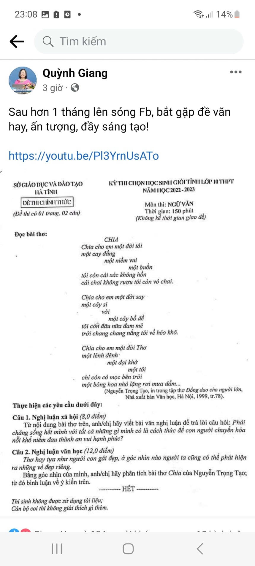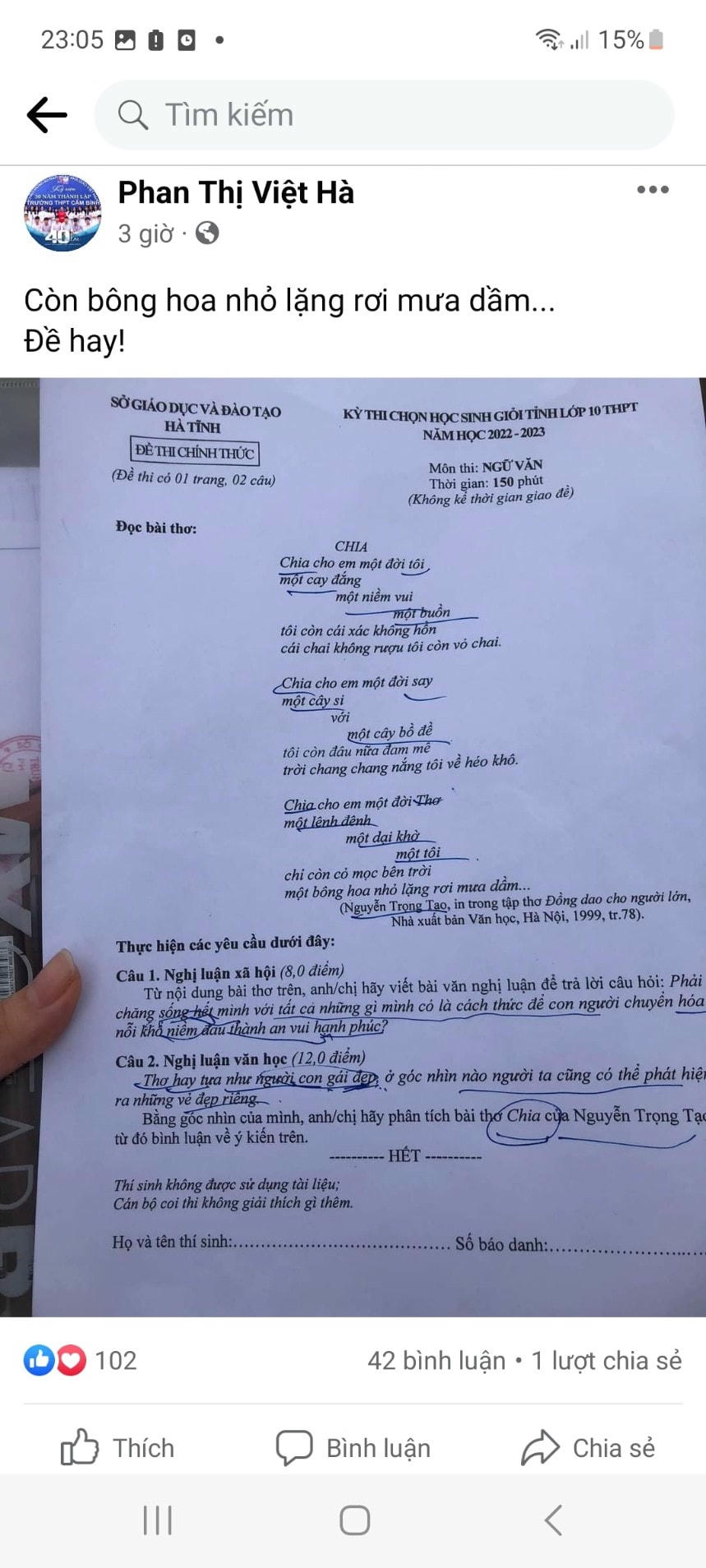 Đọc đề thi môn Ngữ Văn, dư luận ở Hà Tĩnh đã chia sẻ nhiều ý kiến trái chiều.