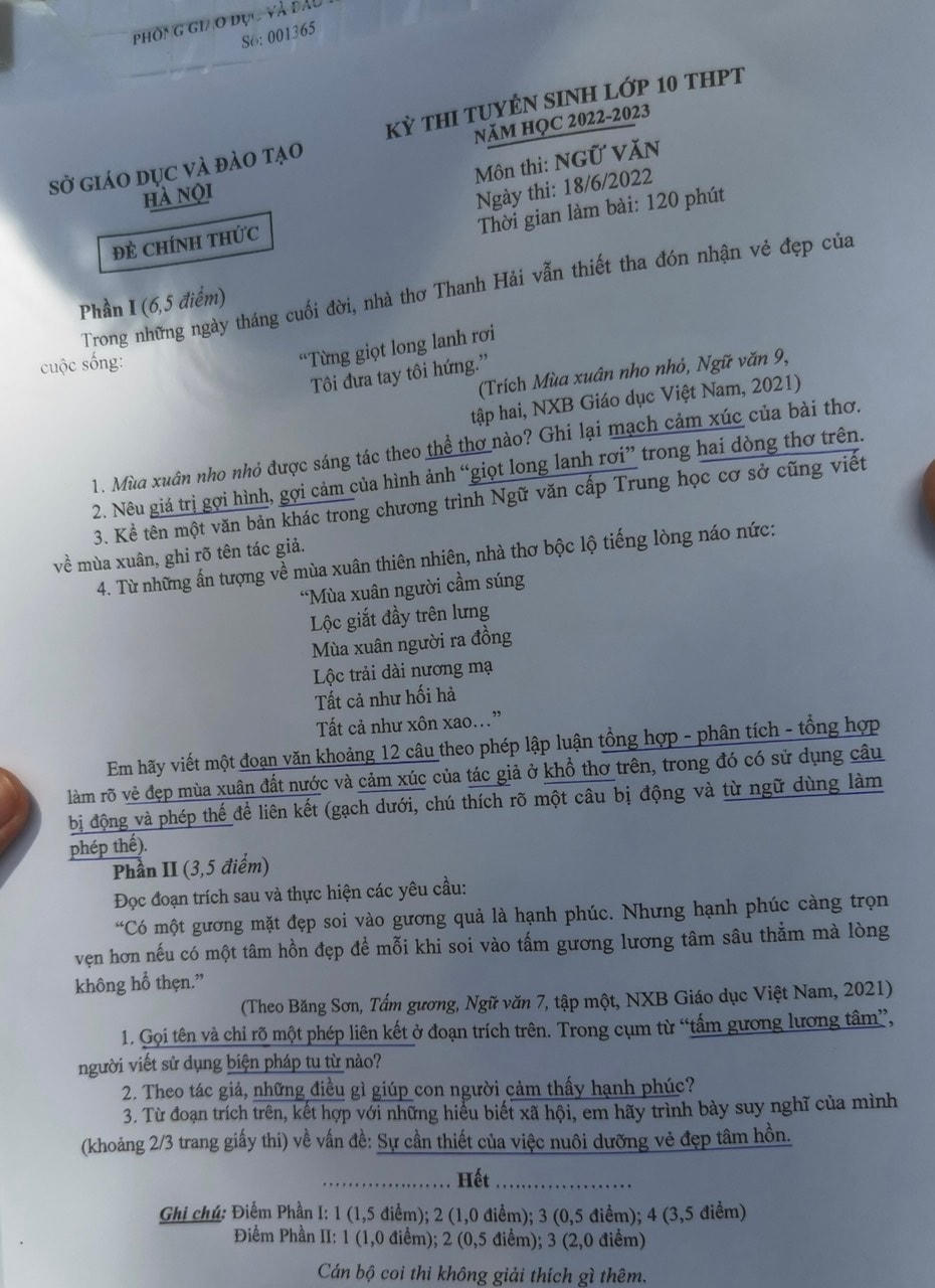 Đề thi Ngữ văn vừa sức, thí sinh, phụ huynh Hà Nội thở phào