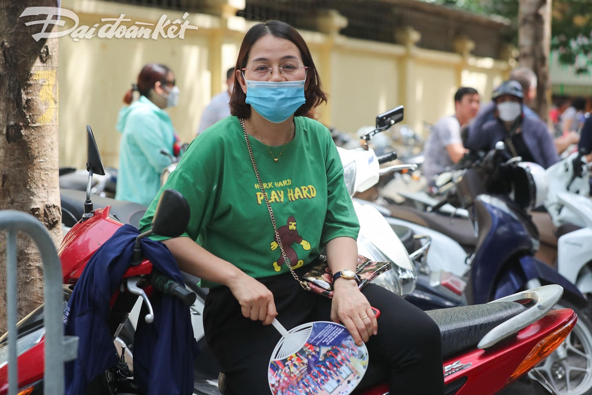 Mặc dù là con thứ 2 thi vào lớp 10 nhưng chị Lê Thị Thu Hà, phụ huynh thí sinh La Ngọc Quang, học sinh lớp 9A5 Trường THCS Hoàng Hoa Thám, vẫn có hồi hộp, lo lắng. Chờ con ở ngoài phòng thi, chị Hà cũng như nhiều phụ huynh khác vô cùng nóng ruột.