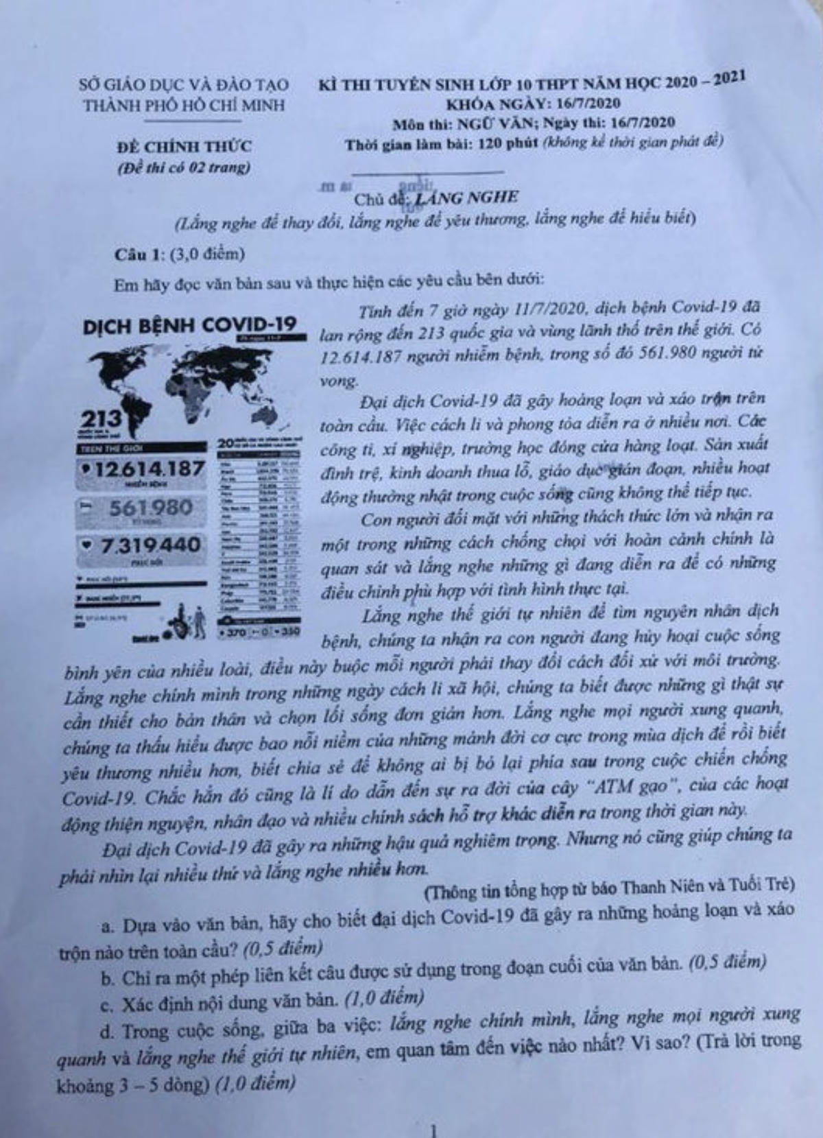 Đề tuyển sinh lớp 10 THPT năm 2020 – 2021 của Sở Giáo dục và Đào tạo TP HCM vẫn gây bất ngờ bởi sự mới mẻ trong cách ra đề cũng như tạo điều kiện cho học sinh được thể hiện mình.