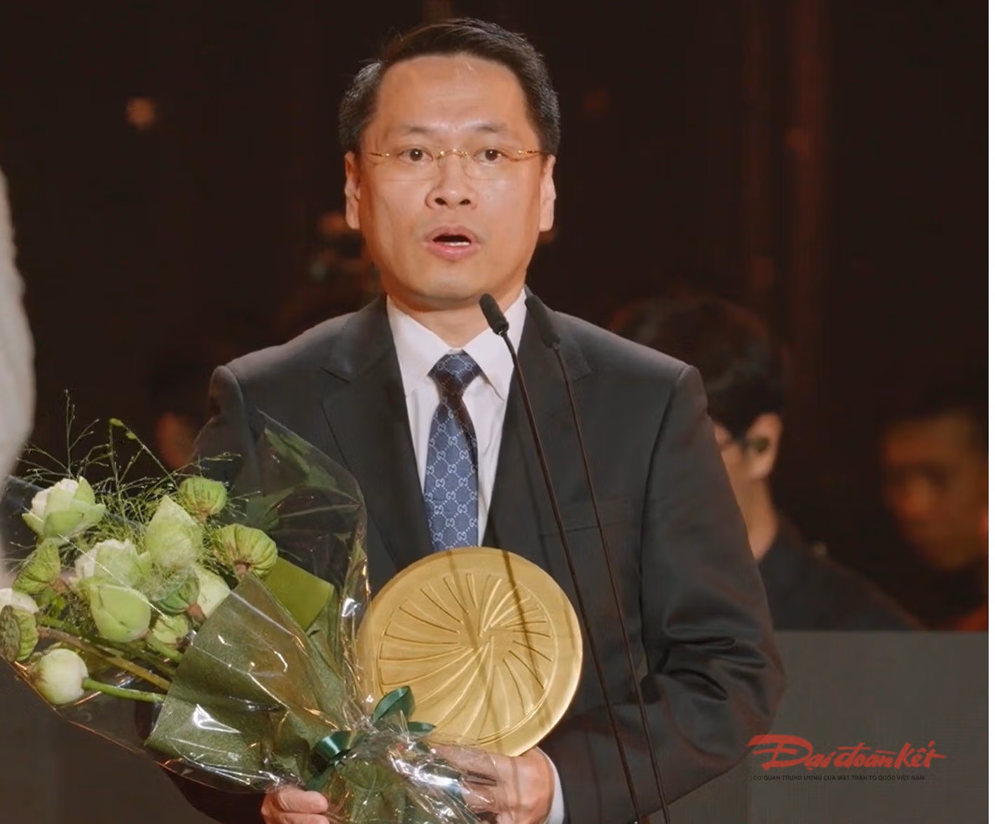 Thay mặt Báo Đại Đoàn Kết, nhà báo Trương Thành Trung bày tỏ sự trân trọng cảm ơn các lãnh đạo, đại biểu, Hội đồng Giám khảo, đội ngũ văn nghệ sĩ, trí thức, các nhà sáng tạo, các đối tác, nhà tài trợ và toàn thể những người đã đồng hành, đóng góp tâm huyết cho giải thưởng Tinh Hoa Việt năm 2025. Nhà báo Trương Thành Trung nhấn mạnh, sự đồng hành này không chỉ góp phần tạo nên thành công của một giải thưởng, mà còn thể hiện niềm tin xã hội đối với những giá trị văn hóa bền vững mà chúng ta đang cùng nhau theo đuổi.