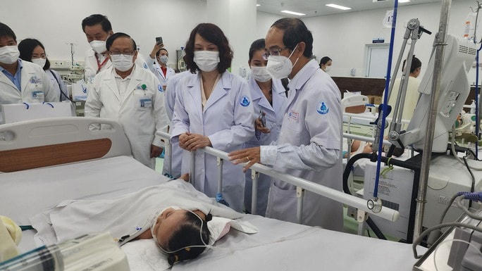GS.TS.BS Phạm Văn Quang - Trưởng Khoa Hồi sức tích cực chống độc, Bệnh viện Nhi đồng 1 cho biết: Hai tuần nay, khoa phải tiếp nhận nhiều ca nguy kịch. Riêng ngày 21/6, bệnh viện nhận liên tiếp 5 ca TCM rất nặng. Có những trường hợp nguy kịch, ngưng thở, phải phối hợp nhiều biện pháp để cứu sống. Chẳng hạn, bé gái 14 tháng tuổi nhập viện cách đây một tuần, ba ngày đầu sốt nhẹ, xuất hiện hồng ban ở bàn tay, bàn chân kèm loét họng. Đến ngày thứ 5, bé giật mình chới với nhiều khi ngủ, gia đình đưa vào viện nhưng diễn tiến nhanh dẫn đến suy hô hấp. Bé ngưng thở, bác sĩ đặt nội khí quản và chuyển đến khoa hồi sức tích cực để thở máy song trụy tim mạch, mạch nhanh, tụt huyết áp, đe dọa tính mạng. Sau lọc máu, tình trạng cải thiện, hiện cháu bé cai được máy thở, tỉnh táo.