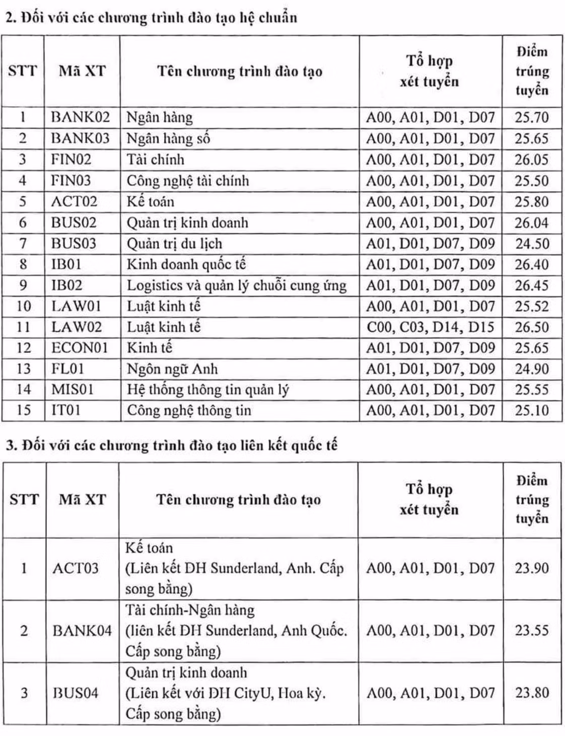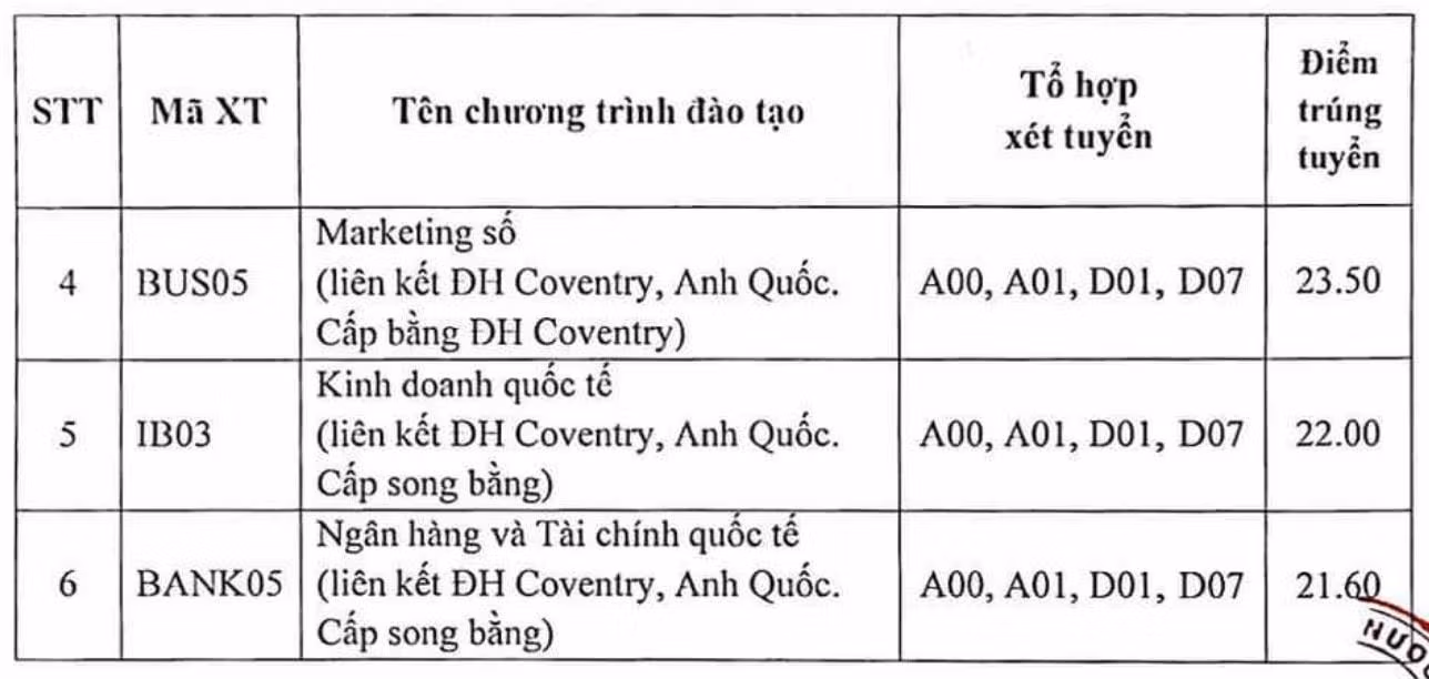 Hội đồng tuyển sinh Học viện Ngân hàng thông báo về mức điểm trúng tuyển đối với phương thức xét tuyển dựa trên kết quả thi THPT năm 2023 tại Trụ sở Học viện (mã trường NHH). Mức điểm trúng tuyển đã bao gồm điểm ưu tiên.