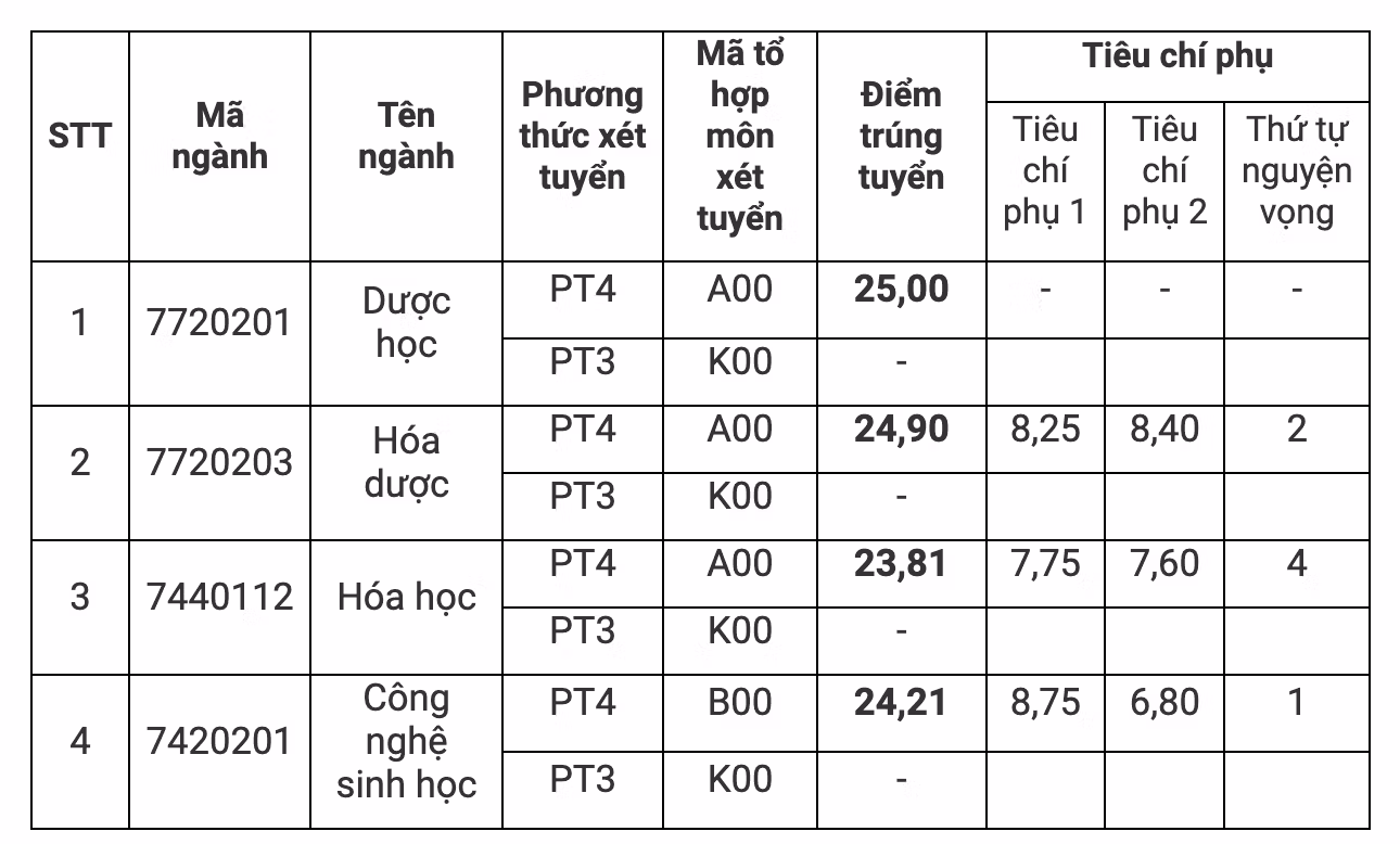Điểm chuẩn Trường Đại học Dược Hà Nội từ 23,81 đến 25 điểm