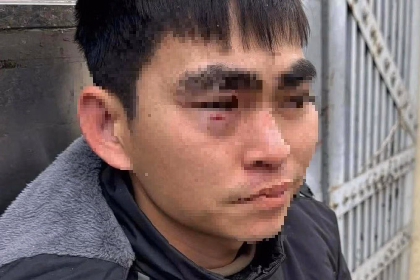 Sau vụ việc, nam shipper bị tím mắt, xước xát ở vùng mặt.