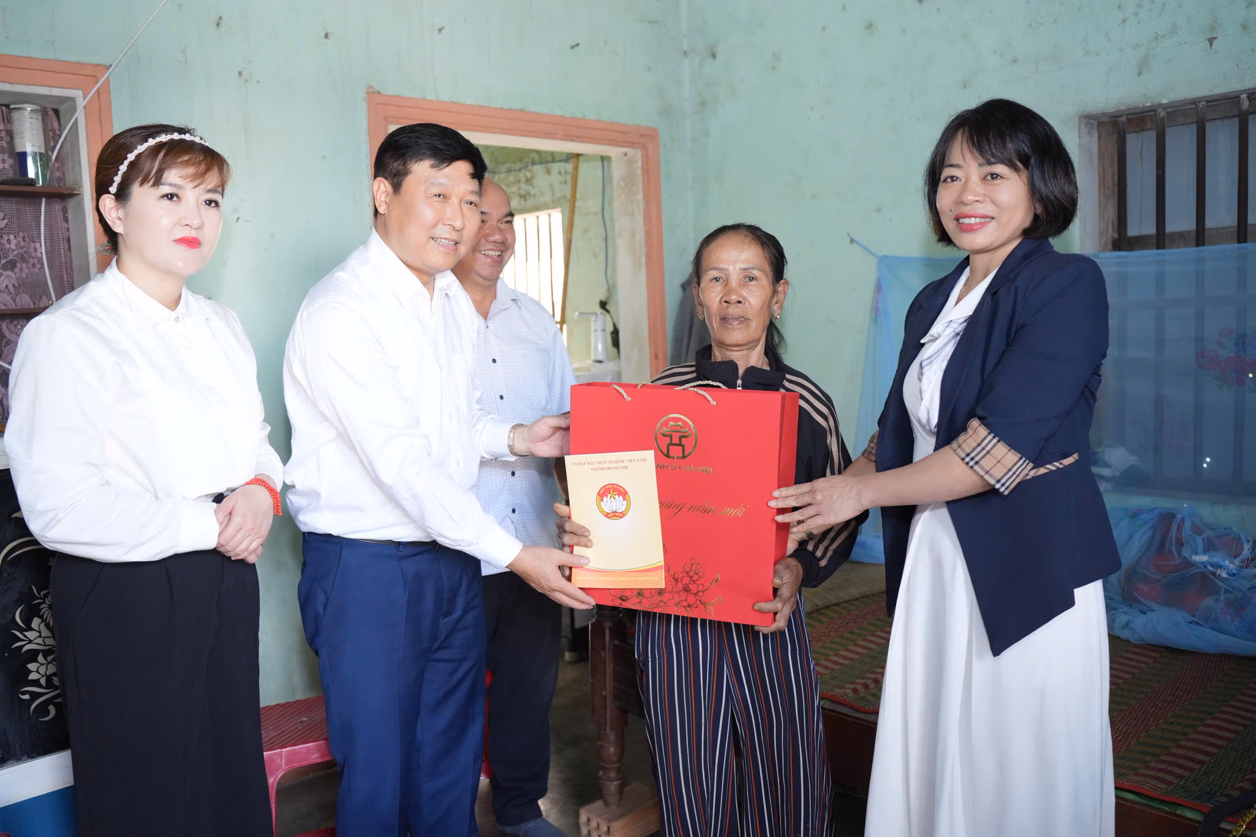 Cụ thể, đoàn đến thăm em Nguyễn Thị Thúy Ny (sinh năm 2007, ở tại thôn Vinh Quang 2) thuộc hộ nghèo; em mồ côi cha, mẹ bỏ đi, hiện đang sống cùng ông bà nội và hai em nhỏ. Đoàn cũng đến thăm bà Nguyễn Thị Đậu (sinh năm 1946, ở tại thôn Tân Giản) thuộc hộ cận nghèo, gia đình có 7 nhân khẩu, trong đó có người cao tuổi, trẻ em, người bị tâm thần và người đang mắc bệnh hiểm nghèo.