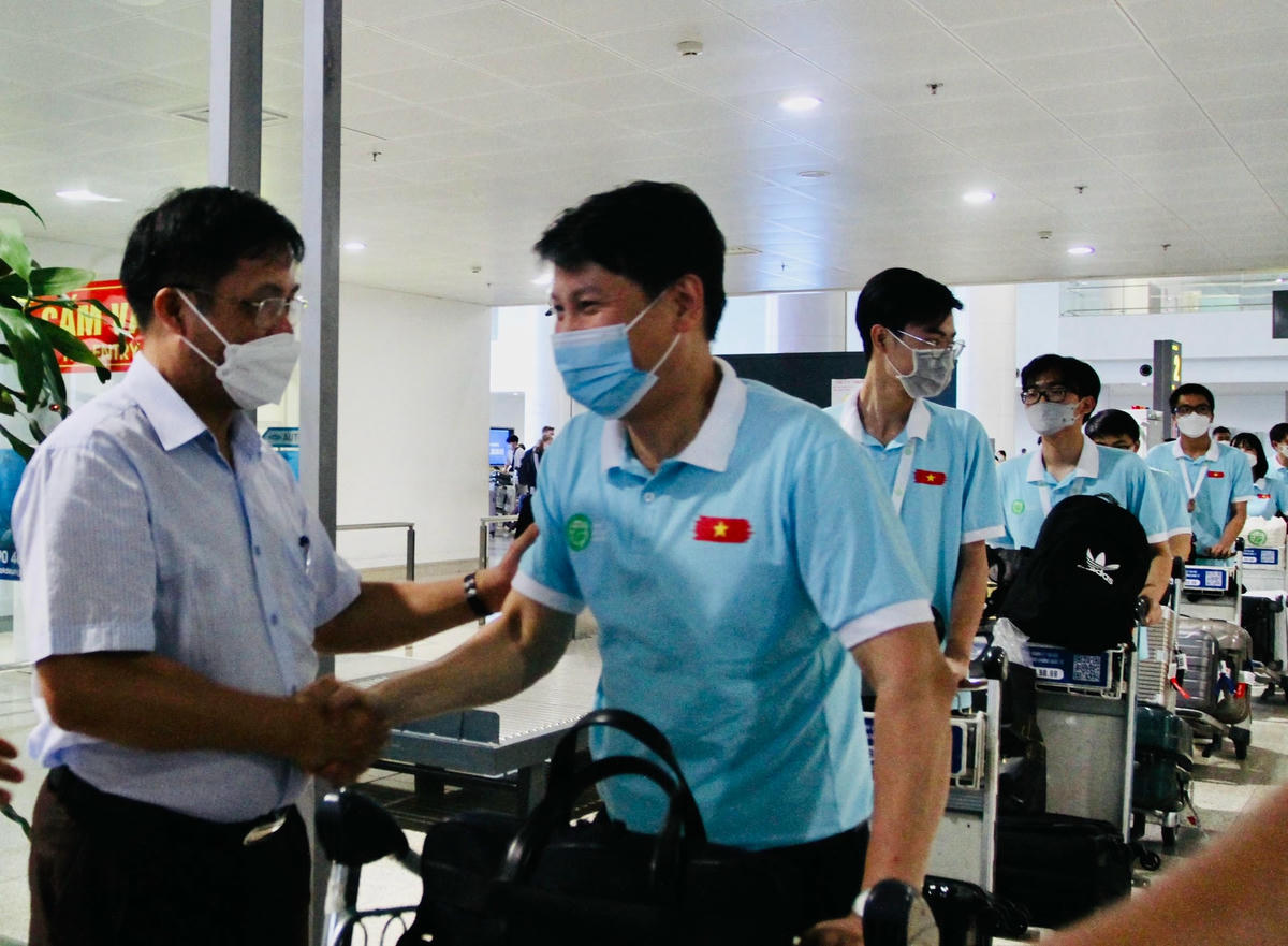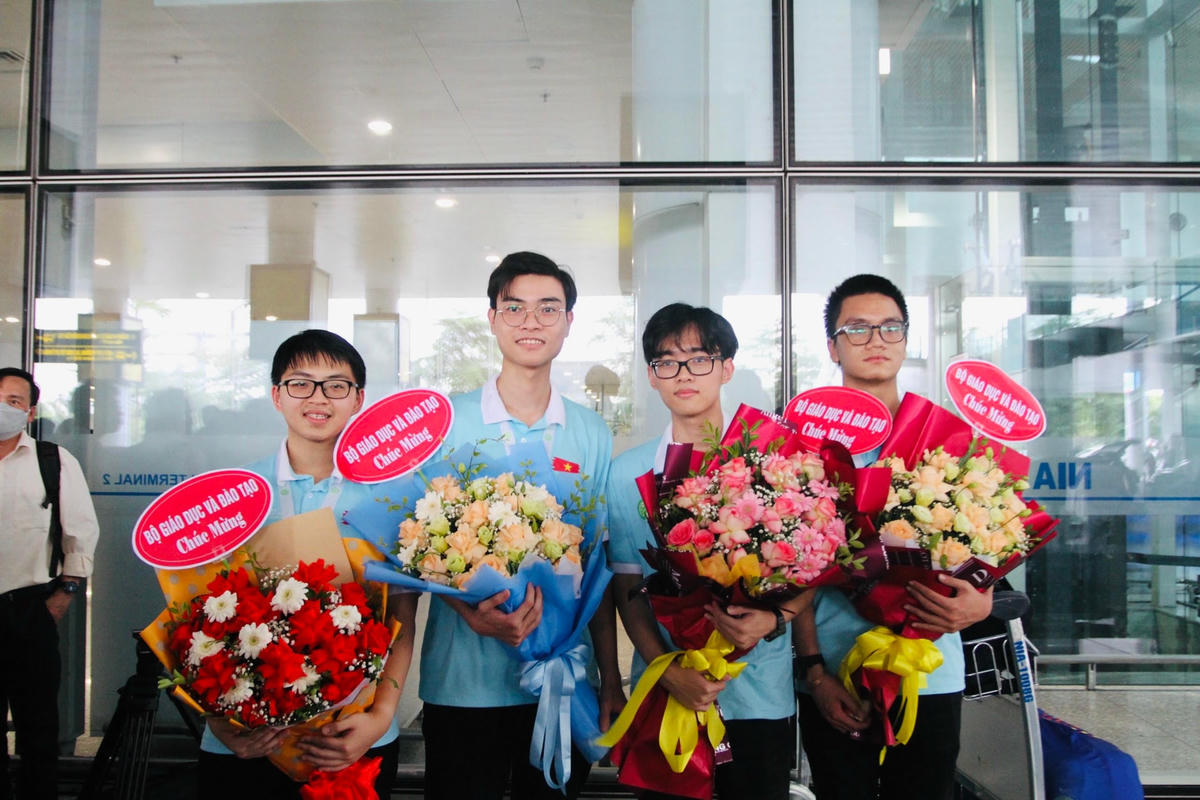 Chiều 19/7, đoàn học sinh Việt Nam dự thi Olympic Sinh học quốc tế 2022 tại Armenia đã về đến Việt Nam. Đại diện Bộ GDĐT đón và chúc mừng đoàn tại sân bay quốc tế Nội Bài.