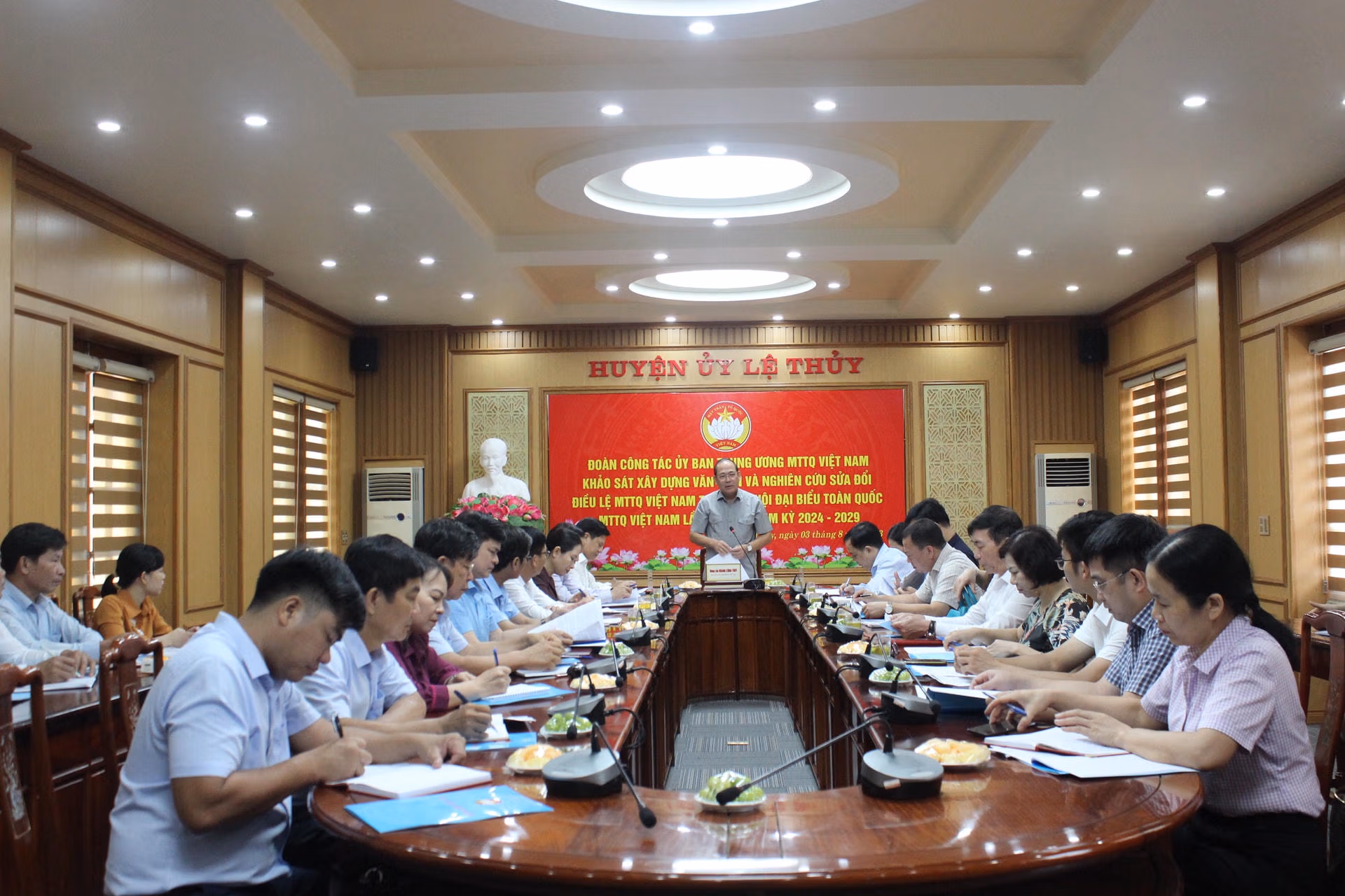 Ngày 3/8, đoàn khảo sát của Ủy ban Trung ương MTTQ Việt Nam do ông Hoàng Công Thủy - Phó Chủ tịch Ủy ban Trung ương MTTQ Việt Nam làm trưởng đoàn có chuyến làm việc với Ban Thường trực Ủy ban MTTQ Việt Nam huyện Lệ Thủy (tỉnh Quảng Bình) để lấy ý kiến phục vụ xây dựng văn kiện và nghiên cứu, sửa đổi Điều lệ MTTQ Việt Nam trình Đại hội đại biểu toàn quốc MTTQ Việt Nam lần thứ X, nhiệm kỳ 2024-2029.