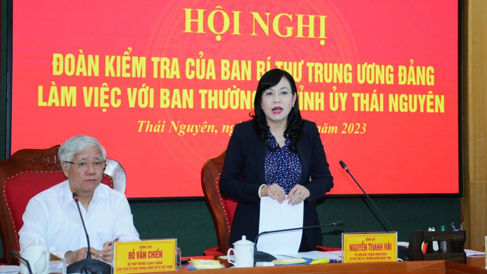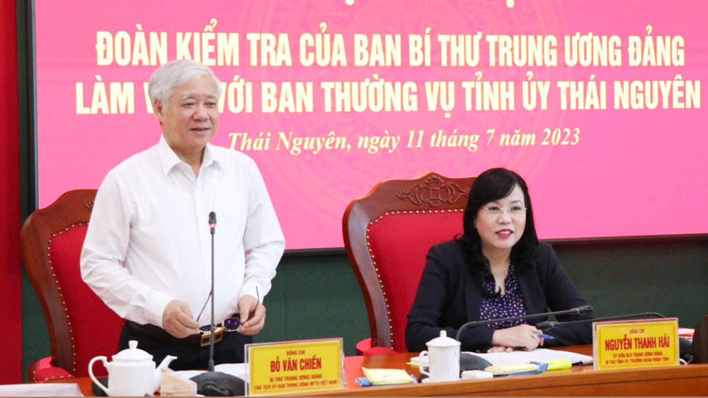 Sáng 11/7, Đoàn kiểm tra của Ban Bí thư Trung ương Đảng do ông Đỗ Văn Chiến, Bí thư Trung ương Đảng, Chủ tịch UBTƯ MTTQ Việt Nam làm Trưởng đoàn đã làm việc với Ban Thường vụ Tỉnh ủy Thái Nguyên để kiểm tra việc lãnh đạo, chỉ đạo và tổ chức thực hiện Kết luận số 21-KL/TW ngày 25/10/2021 của Ban Chấp hành Trung ương Đảng về đẩy mạnh xây dựng, chỉnh đốn Đảng và hệ thống chính trị; kiên quyết ngăn chặn, đẩy lùi, xử lý nghiêm cán bộ, đảng viên suy thoái về tư tưởng chính trị, đạo đức, lối sống, biểu hiện “tự diễn biến”, “tự chuyển hóa”. Tham gia Đoàn kiểm tra có bà Nguyễn Thị Thu Hà, Ủy viên Trung ương Đảng, Phó Chủ tịch - Tổng Thư ký UBTƯ MTTQ Việt Nam.