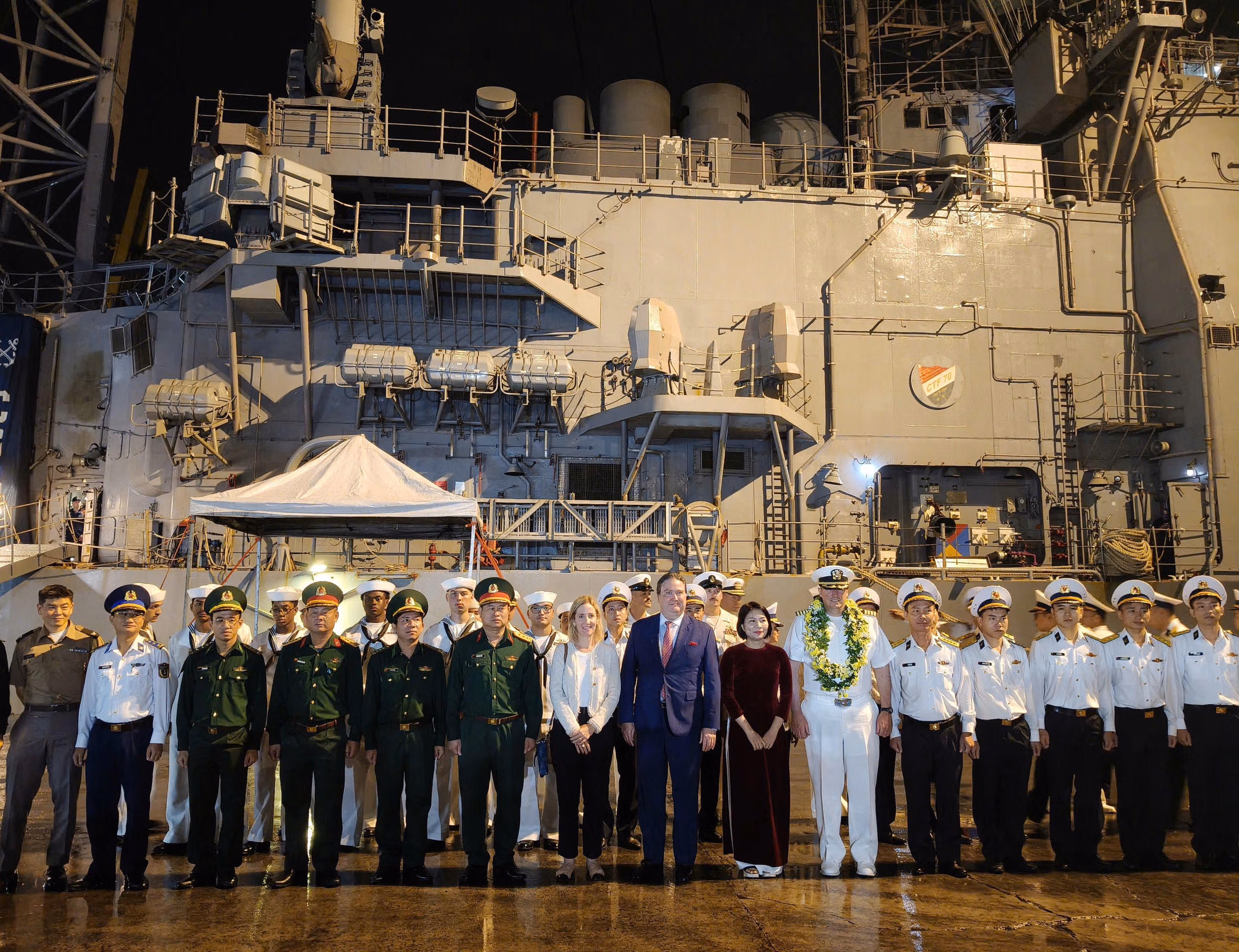 Tối 8/12, đoàn tàu Hải quân Hoa Kỳ gồm tàu tấn công đổ bộ USS Tripoli và tàu tuần dương USS Robert Smalls cập Cảng Tiên Sa (phường Sơn Trà, TP Đà Nẵng), bắt đầu chuyến thăm hữu nghị TP Đà Nẵng.