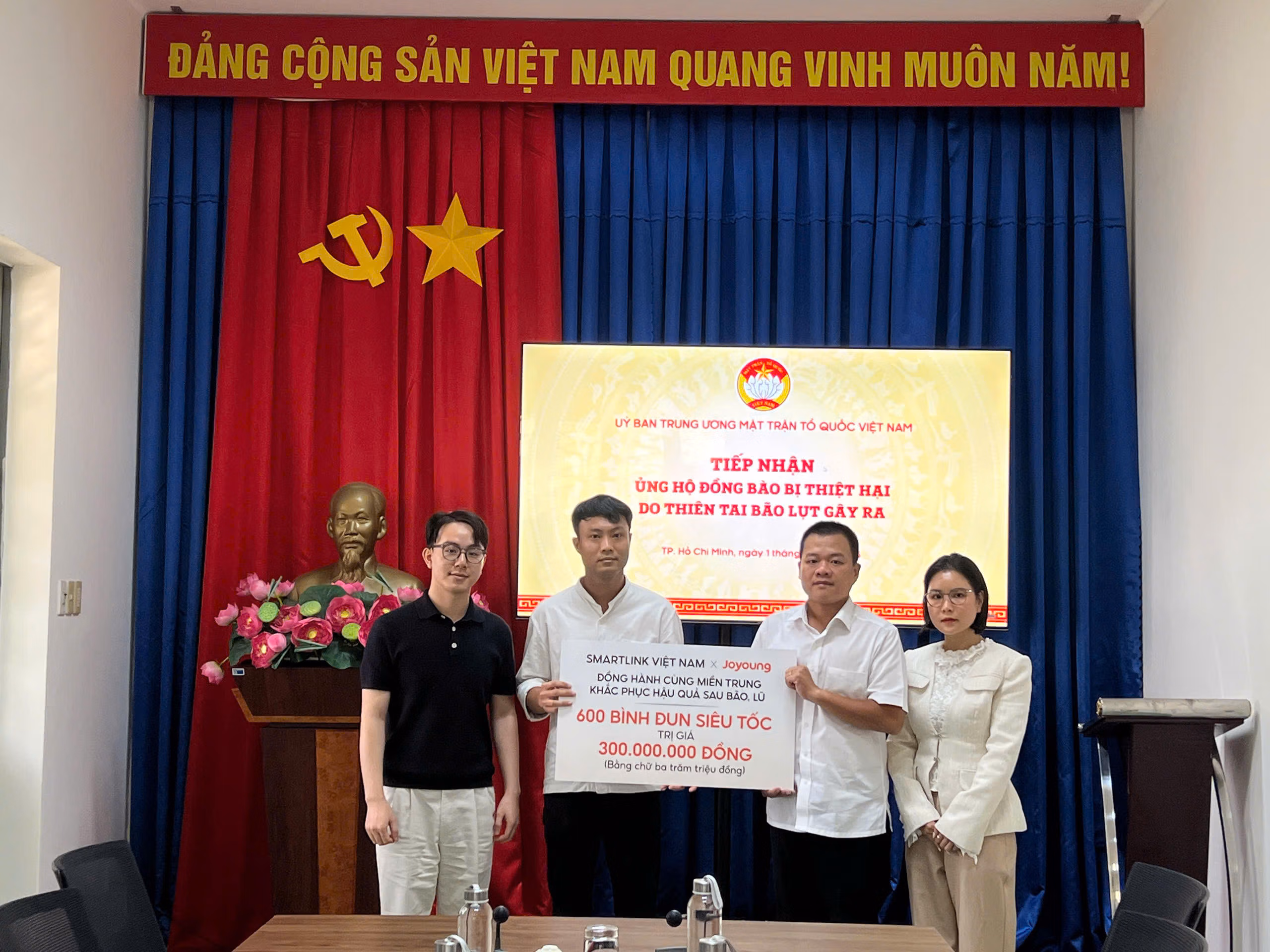 Theo đó, Công ty TNHH La Vie do ông Đỗ Hữu Hào (Phó Tổng Giám đốc) làm đại diện trao bảng tượng trưng số tiền ủng hộ 200 triệu đồng; Công ty Smart-Link Việt Nam do ông Huỳnh Trung Viễn (Phó phòng marketing) làm đại diện, kết hợp cùng nhãn hàng Joyoung do bà Nguyễn Thị Thu Nhi (Đại sứ thương hiệu) đã trao bảng trượng trưng ủng hộ 600 bình đun siêu tốc, trị giá khoảng 300 triệu đồng.