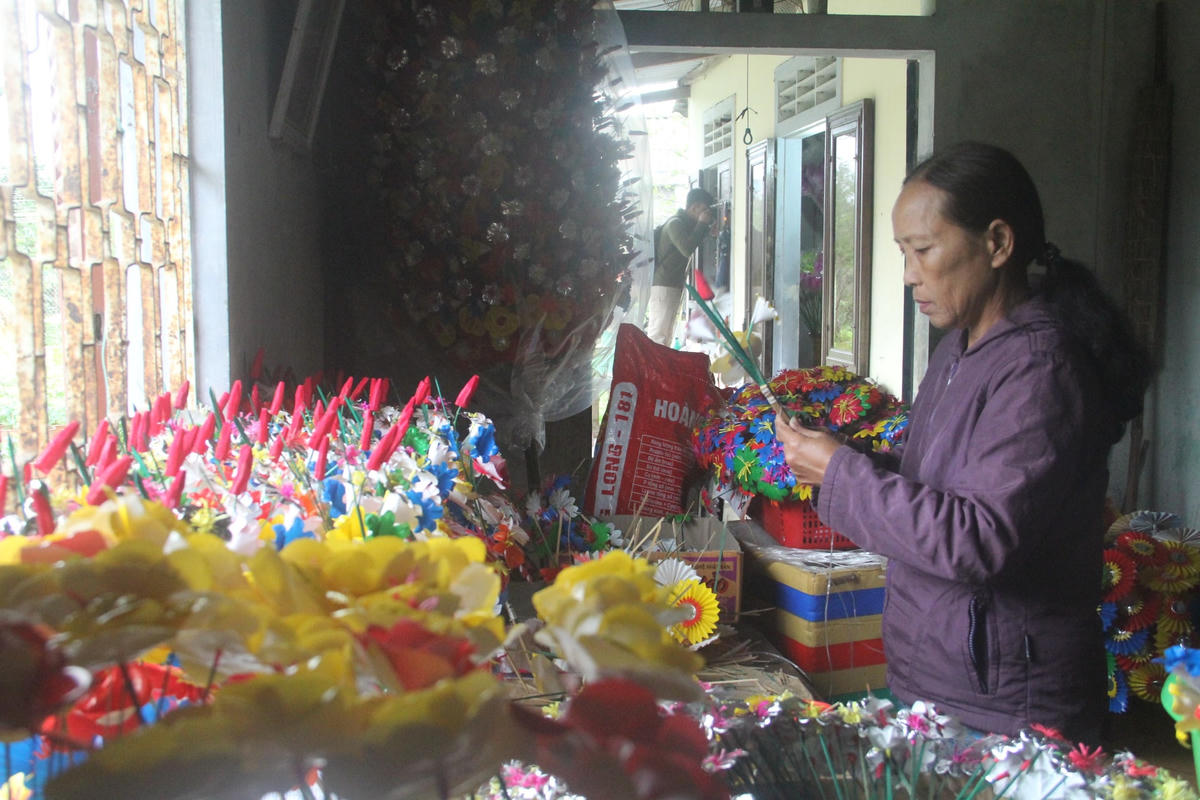 Ông Nguyễn Văn Hiến (58 tuổi) cho biết, năm nay gia đình ông làm khoảng 1.000 cặp hoa giấy thờ cúng phục vụ dịp tết và nhiều hoa dùng để trang trí khác.
