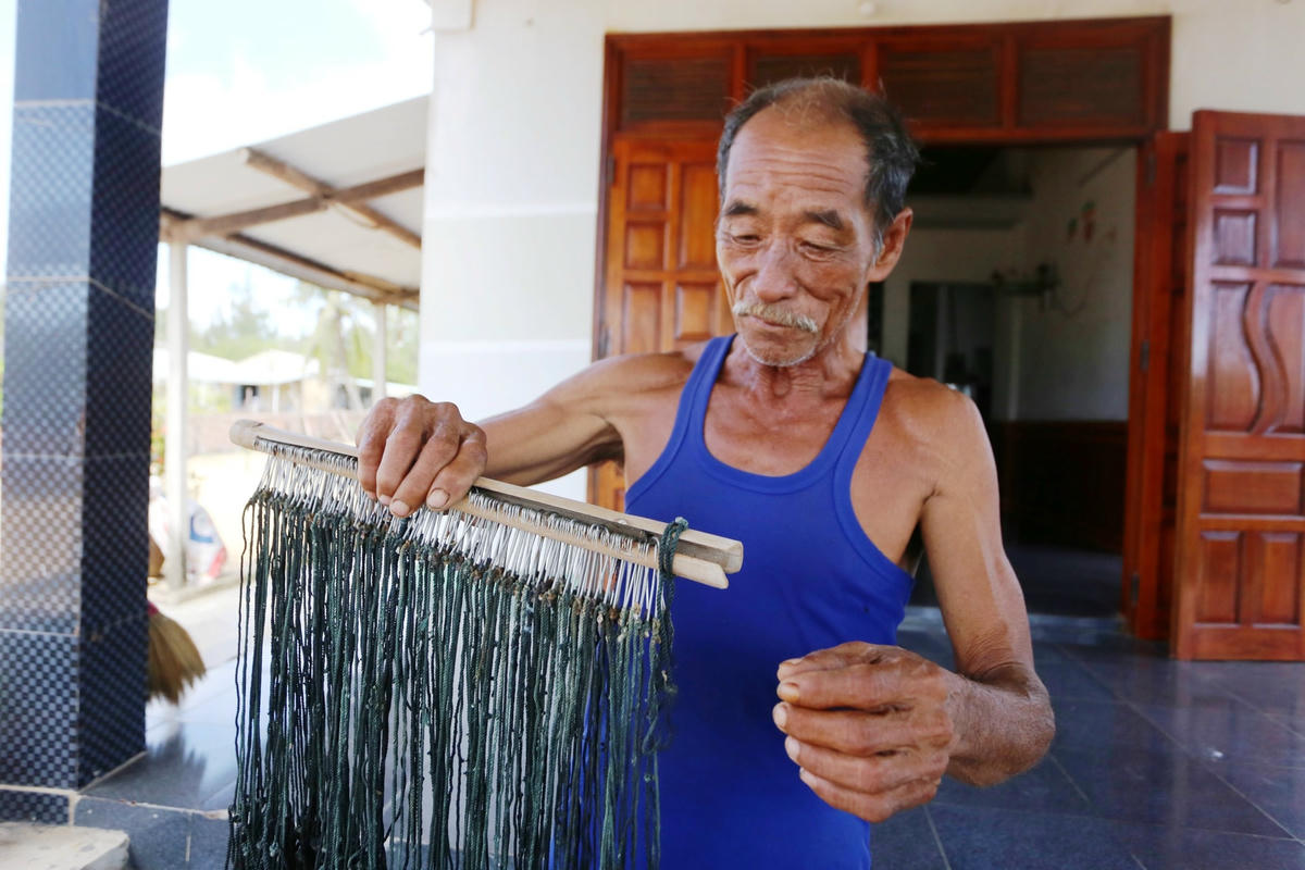 Những ngày cuối tháng 6 chúng tôi tìm về làng chài Bình Hải gặp gỡ người dân nơi đây. Ông Hồ Văn Chương (người dân xã Bình Hải) trong lúc đem ra 10 nẹp câu để sửa chữa, ông cho chúng tôi biết số câu này do lâu ngày không sử dụng nên sửa chữa lại để chờ biển lặng sóng đánh bắt hải sản. Từng lưỡi câu được ông mài dũa sắc bén cho vào nẹp tre gọn gàng.