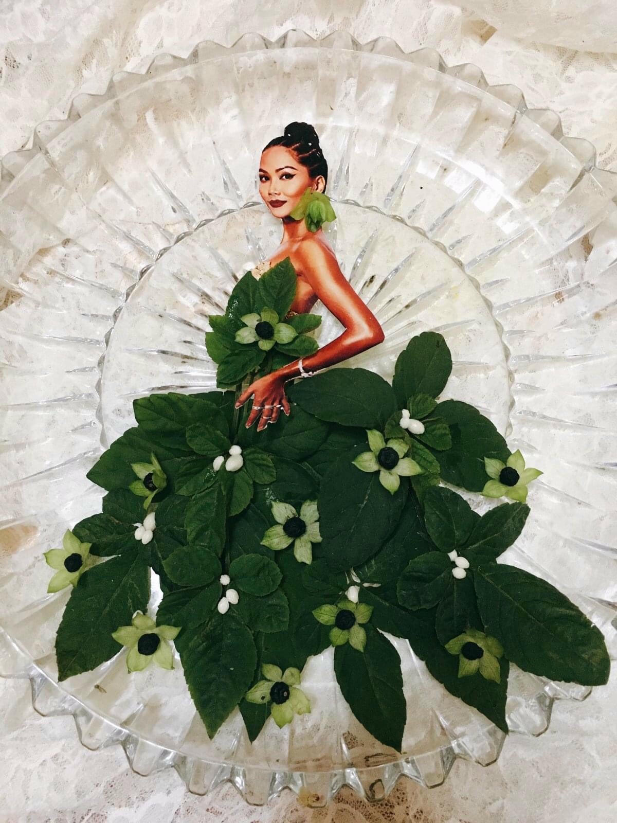 Bằng khả năng sáng tạo vô biên, chị Phương Giang (29 tuổi, Hà Nội) đã nghĩ cách tạo nên những thiết kế độc đáo từ các loại hoa lá, rau củ và khoác lên mình “Sao” Việt khiến cư dân mạng thích thú.