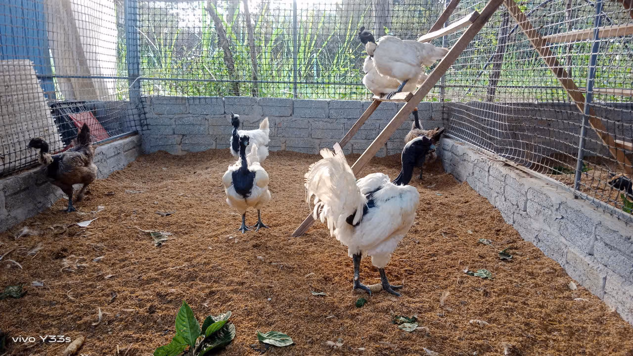 Trong khu trại, mỗi giống gà mang một câu chuyện riêng. Gà Mông Cổ có thân hình vạm vỡ, con trống trưởng thành nặng tới 5 kg, thích hợp nuôi thương phẩm. Gà Hy Lạp phát triển nhanh, khung xương lớn, cho năng suất thịt cao. Còn gà "mặt quỷ" với màu đen tuyền từ da đến nội tạng lại trở thành “đặc sản” được giới chơi gà cảnh và nhà hàng săn tìm.