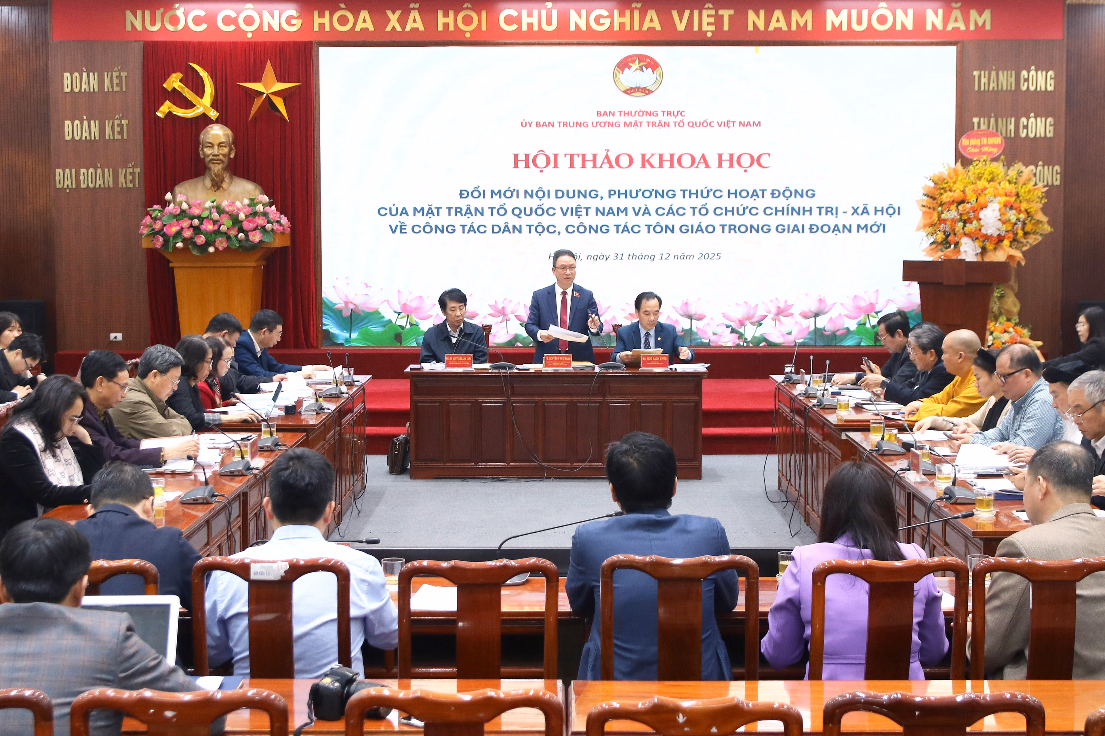 Tại Hội thảo, các chuyên gia, nhà khoa học đã tập trung thảo luận, đóng góp ý kiến, góp phần làm rõ những yêu cầu, đòi hỏi của giai đoạn mới, kỷ nguyên mới và vấn đề đặt ra đối với việc đổi mới nội dung, phương thức công tác dân tộc, công tác tôn giáo của MTTQ Việt Nam, các tổ chức chính trị - xã hội; xác định những khó khăn, thách thức và các yêu cầu đặt ra trong công tác dân tộc, tôn giáo của MTTQ Việt Nam và các tổ chức chính trị - xã hội trong bối cảnh vận hành tổ chức, bộ máy mới và chính quyền địa phương hai cấp; đề xuất về các nội dung, yêu cầu thực hiện chuyển đổi số trong lĩnh vực công tác dân tộc, công tác tín ngưỡng, tôn giáo và tham gia nghiên cứu khoa học, hợp tác quốc tế về công tác dân tộc, công tác tín ngưỡng, tôn giáo theo chức năng, nhiệm vụ của MTTQ Việt Nam và các tổ chức chính trị - xã hội trong giai đoạn hiện nay.