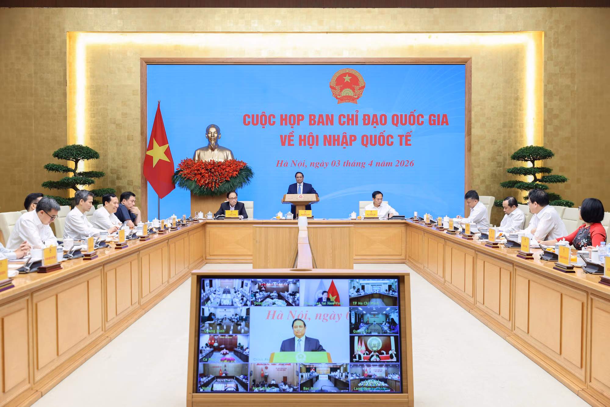 Chiều 3/4, tại trụ sở Chính phủ, Thủ tướng Phạm Minh Chính, Trưởng Ban Chỉ đạo quốc gia về hội nhập quốc tế, chủ trì cuộc họp của Ban Chỉ đạo nhằm rà soát kết quả triển khai công tác hội nhập quốc tế, các cam kết, thỏa thuận thời gian qua và phương hướng, nhiệm vụ thời gian tới.
