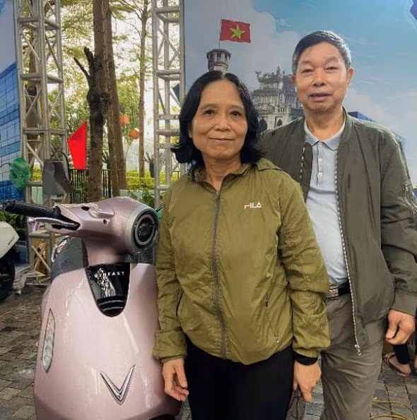 Có mặt tại khu vực trưng bày các mẫu xe điện từ sớm, bà Trần Thị Phong Thanh (Hà Nội) mang chiếc xe Vespa của mình đến sự kiện để đổi sang xe điện VinFast. Với nhu cầu đi lại vừa phải, bà cân nhắc một mẫu xe với thiết kế vừa vặn, đủ nhỏ nhắn, linh hoạt và không yêu cầu phải có bằng lái xe khi tham gia giao thông. Sau khi cân nhắc, bà đã quyết định chọn mẫu Evo Grand Lite.