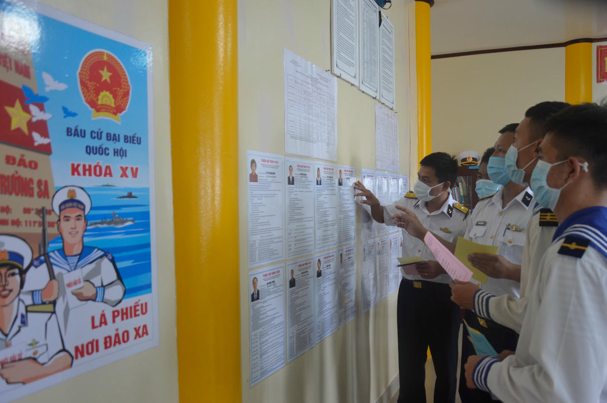 Được biết Tổ bầu cử sớm trên biển thuộc Bộ Tư lệnh Vùng 2 Hải quân đã xuất phát từ ngày 4/5 và hôm nay là tàu cập cảng. Sau khi đón đoàn, các thùng phiếu sẽ được đưa về Bộ Tư lệnh Vùng, bàn giao và nghiêm cất tại văn thư bảo mật của vùng. Đến 19h ngày 23/5 sẽ tiến hành kiểm phiếu theo đúng quy trình của công tác bầu cử.