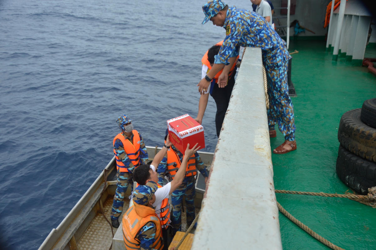 Đón Tổ bầu cử sớm trên biển mang theo những lá phiếu cập bờ