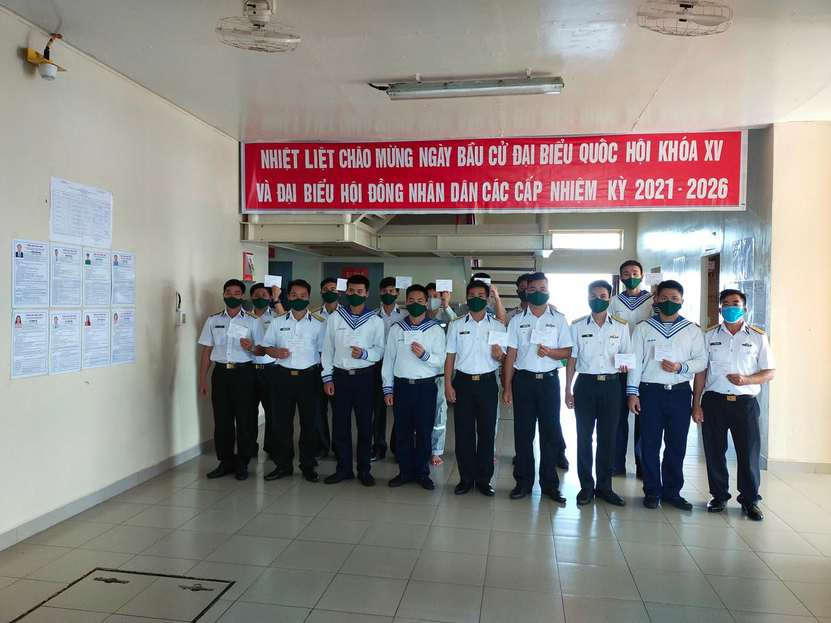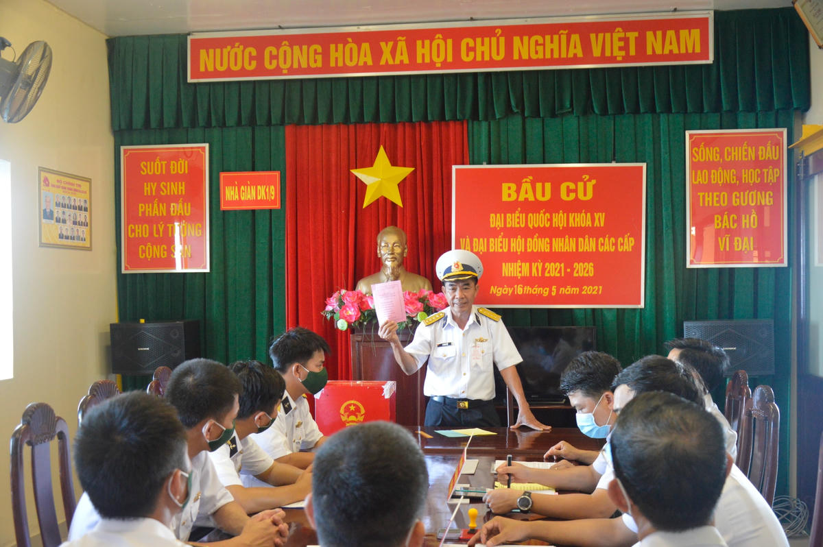 Trong khi đó, Đại úy Phạm Xuân Trãi, Chính Trị viên Nhà giàn DK1.9 cho biết, là một trong những người đầu tiên của cả nước được cầm lá phiếu của cử tri bầu cử Đại biểu Quốc hội khóa XV và Đại biểu HĐND các cấp nhiệm kỳ 2021-2026. Bản thân anh cũng như cán bộ chiến sĩ đang công tác trên các nhà dàn cảm thấy rất vinh dự tự hào và trân trọng sự quan tâm của Đảng, Nhà nước, Quân đội đối với các lực lượng làm nhiệm vụ trên biển.