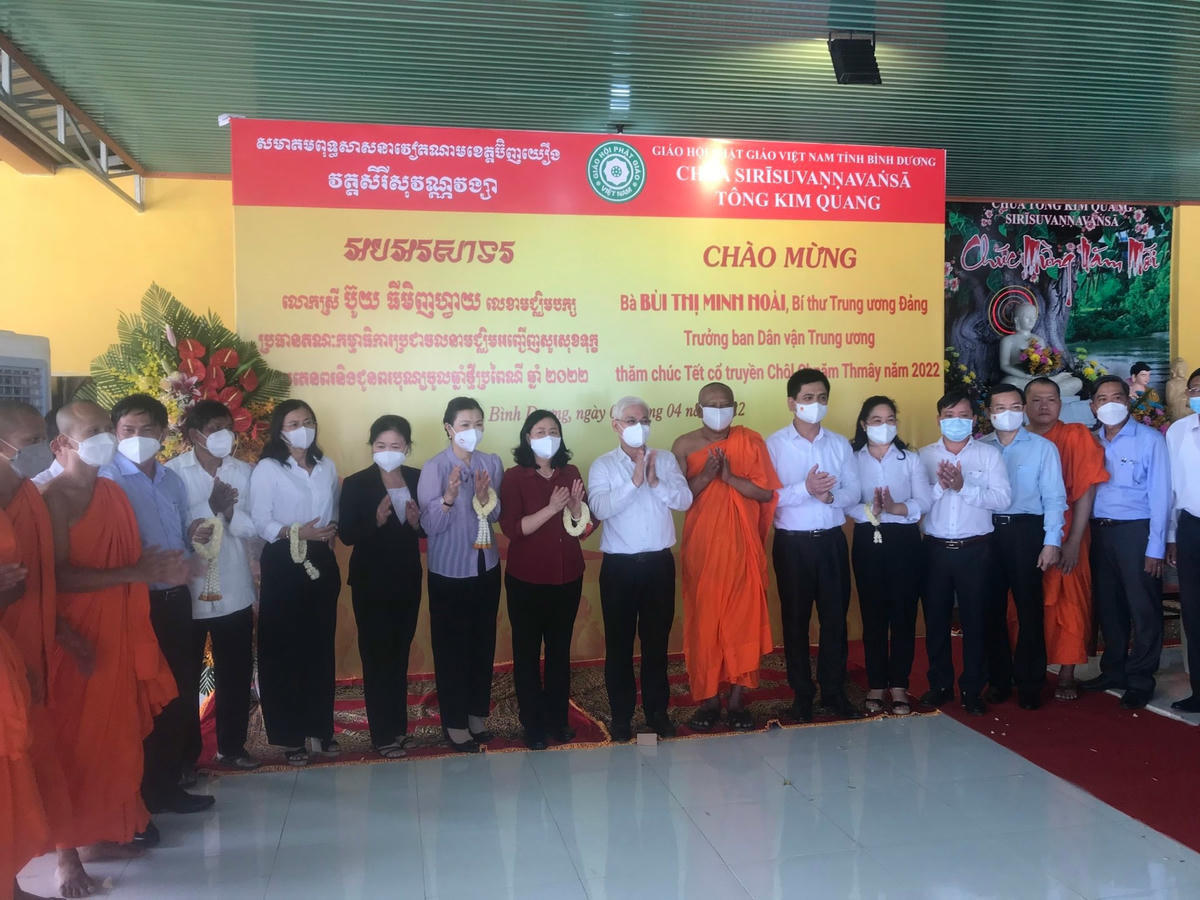 Chiều 6/4, tiếp tục thực hiện kế hoạch của Ban thường trực UBTƯ MTTQ Việt Nam và Ủy ban Dân tộc, đoàn công tác do bà Bùi Thị Minh Hoài, Bí thư Trung ương Đảng, Trưởng ban Dân vận Trung ương dẫn đầu đã có buổi thăm, tặng quà và chúc tết cổ truyền Chôl Chnăm Thmây đồng bào Khmer tại chùa Tông Kim Quang thuộc huyện Phú Giáo, tỉnh Bình Dương.