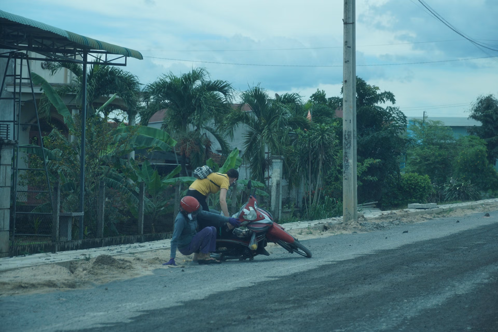 Tuy chưa xảy ra các vụ tai nạn giao thông nghiêm trọng tại đoạn đường đang thi công, nhưng người dân cho biết, việc té ngã diễn ra như “cơm bữa”.